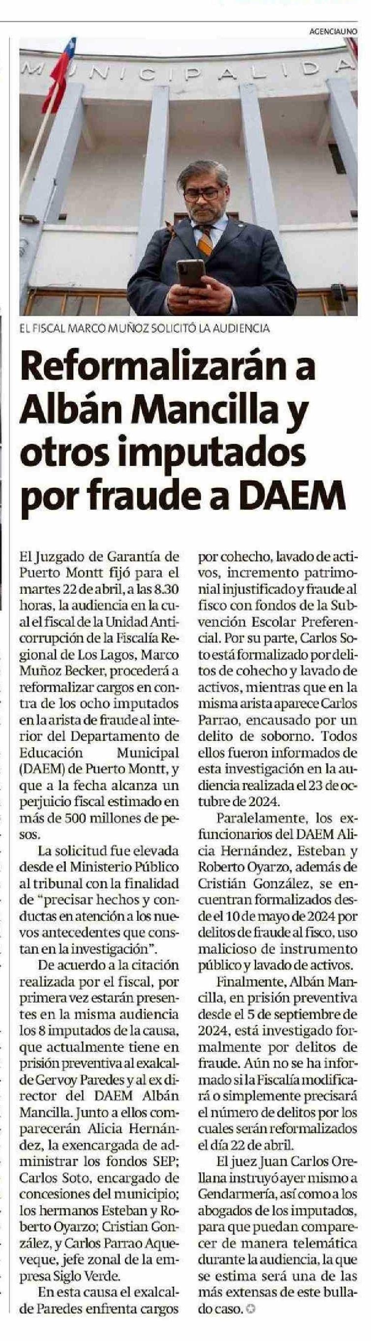 Reformalizarán a Albán Mancilla y por fraude a DAEM otros imputados 10-04-2025 La Estrella de Chiloé |