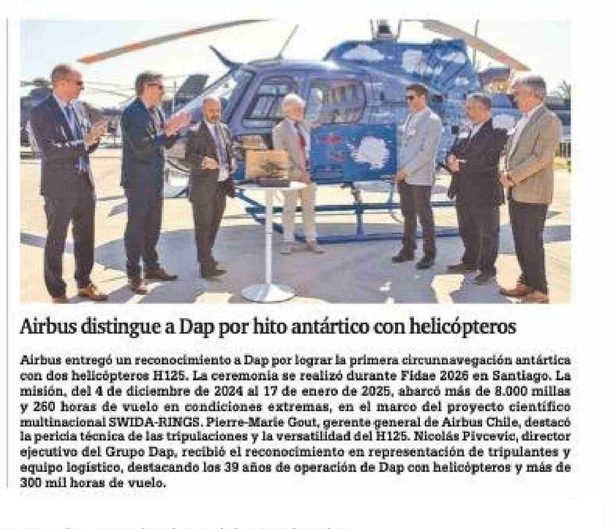 Airbus distingue a Dap por hito antártico con helicópteros 21-04-2026 La Prensa Austral |