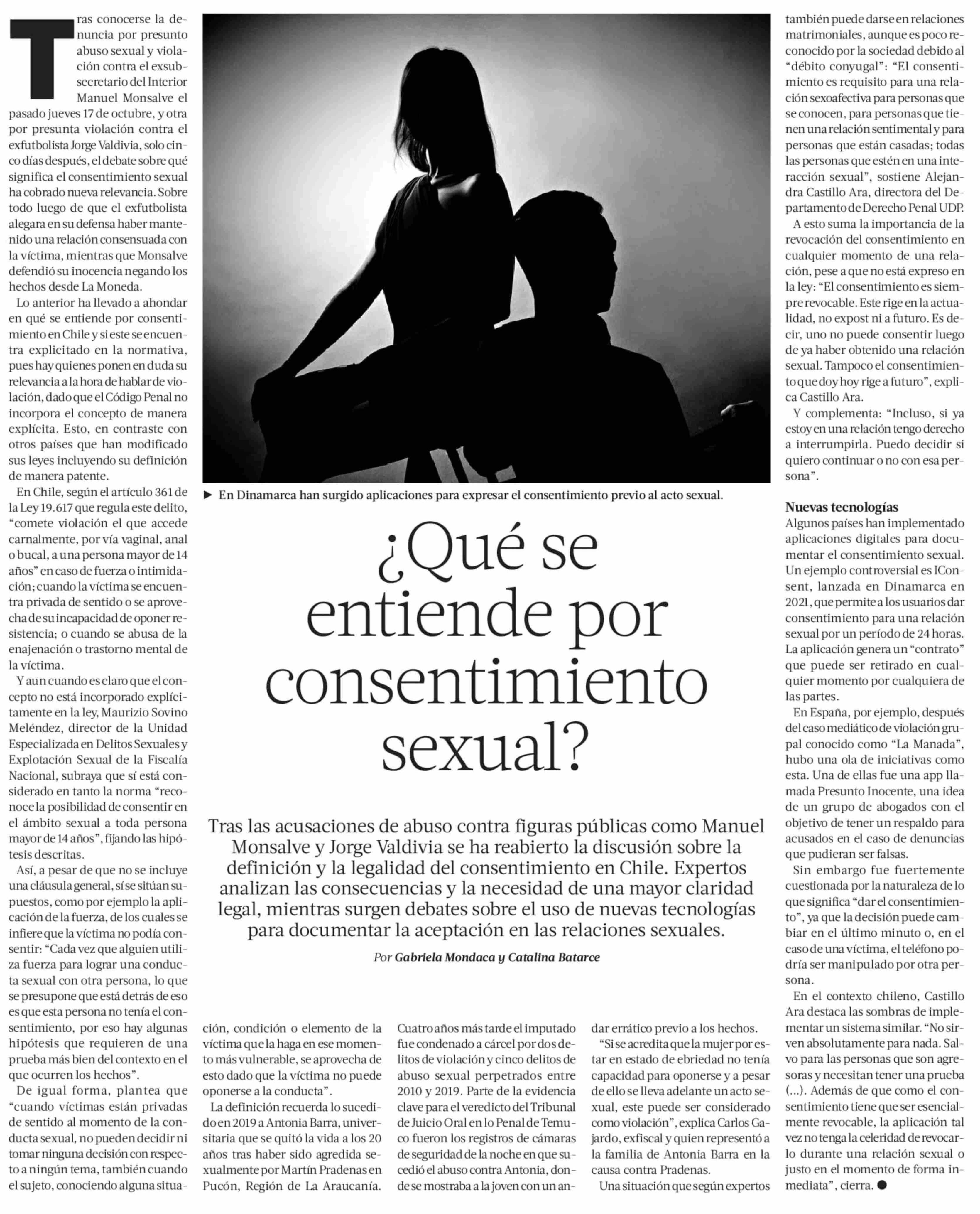¿Qué se entiende por consentimiento sexual? 02-11-2024 La Tercera |