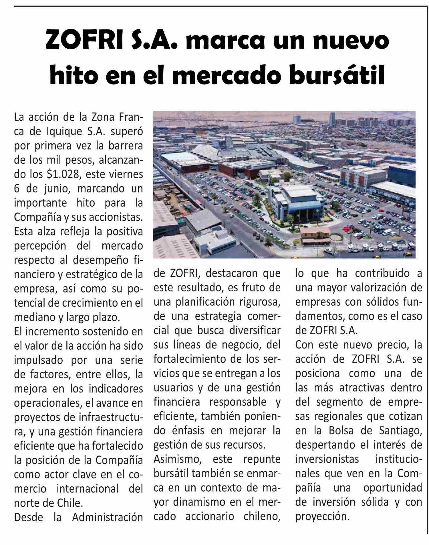 | Título: | ZOFRI S.A. marca un nuevo hito en el mercado bursátil |