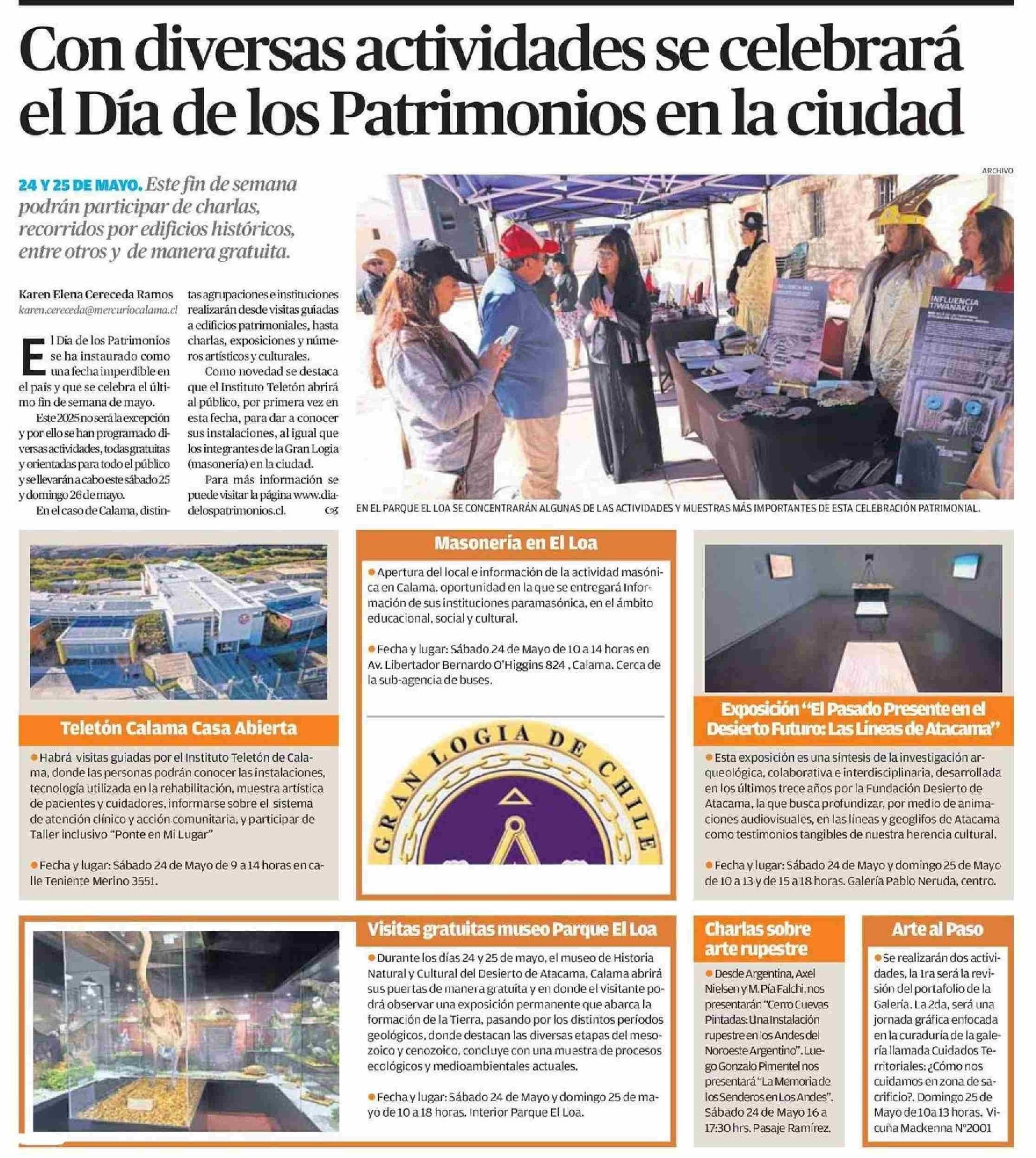 Con diversas actividades se celebrará el Día de los Patrimonios en la ciudad 21-05-2025 El Mercurio de Calama |