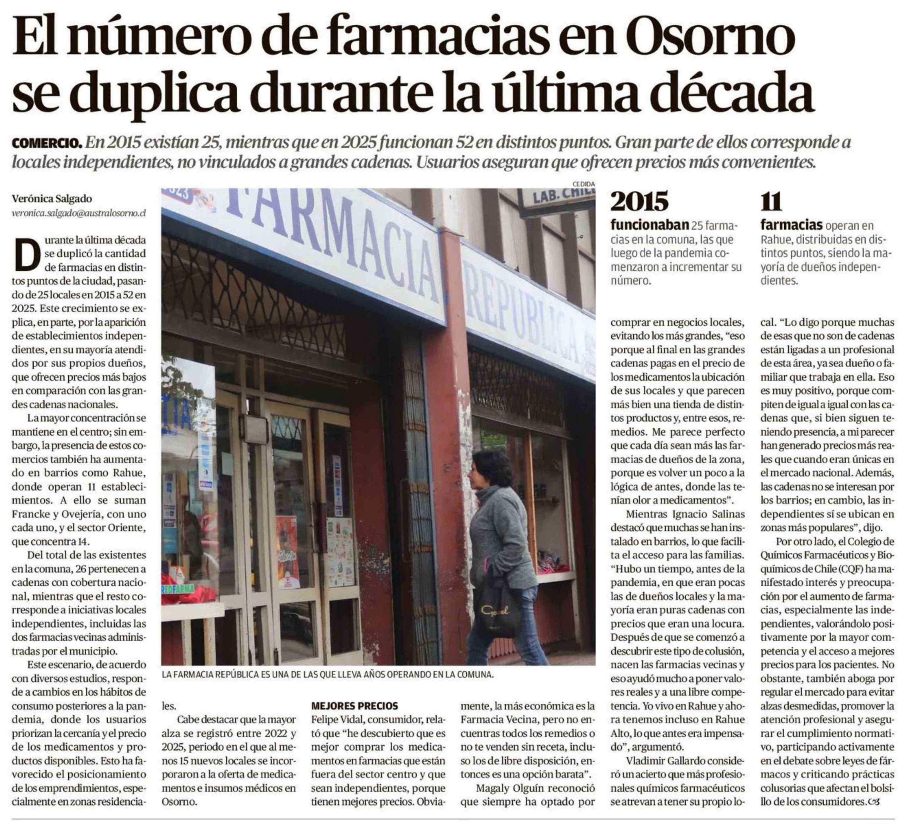 Título: El número de farmacias en Osorno se duplica durante la última década