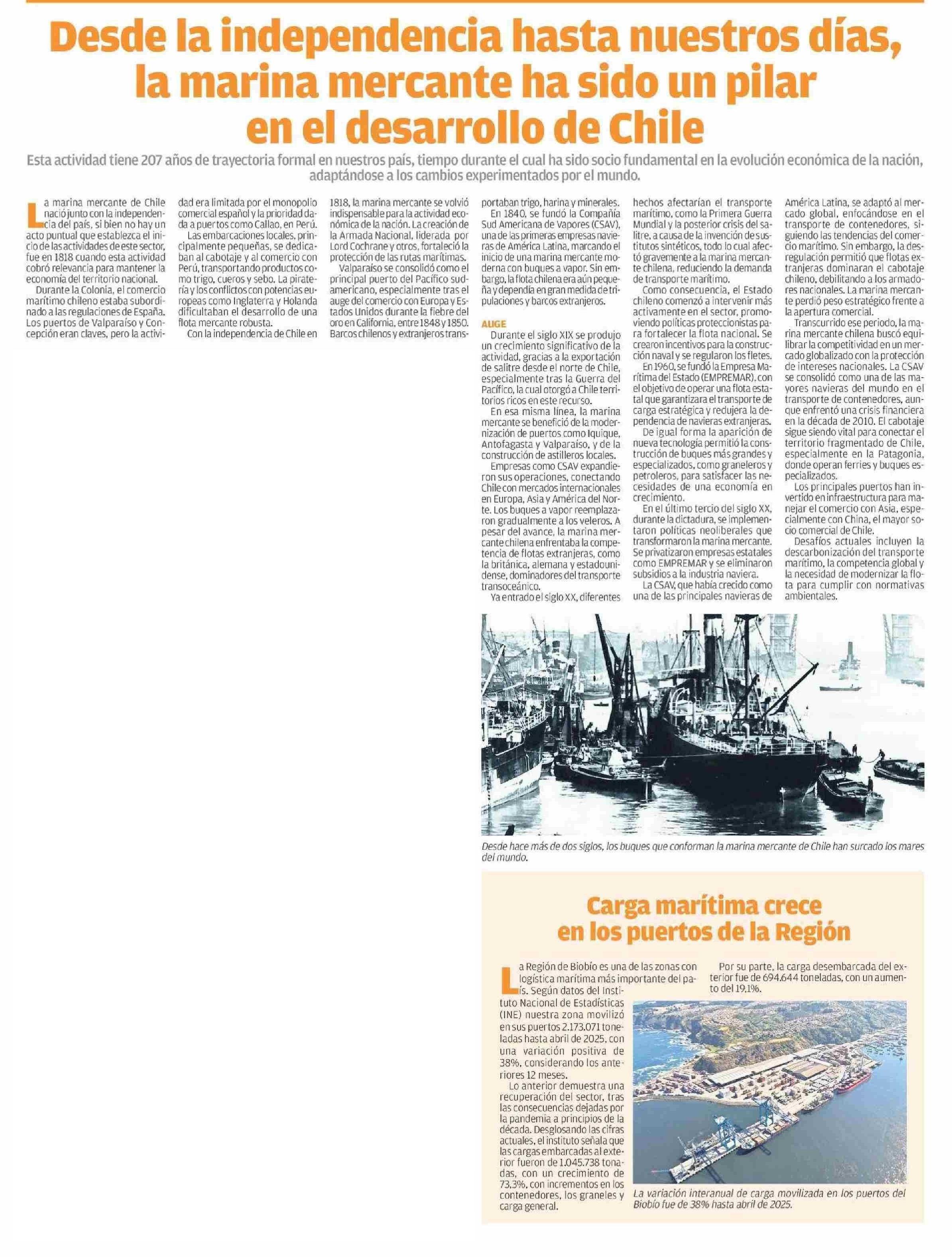 Desde la independencia hasta nuestros días, la marina mercante ha sido un pilar en el desarrollo de Chile 26-06-2025 El Sur |