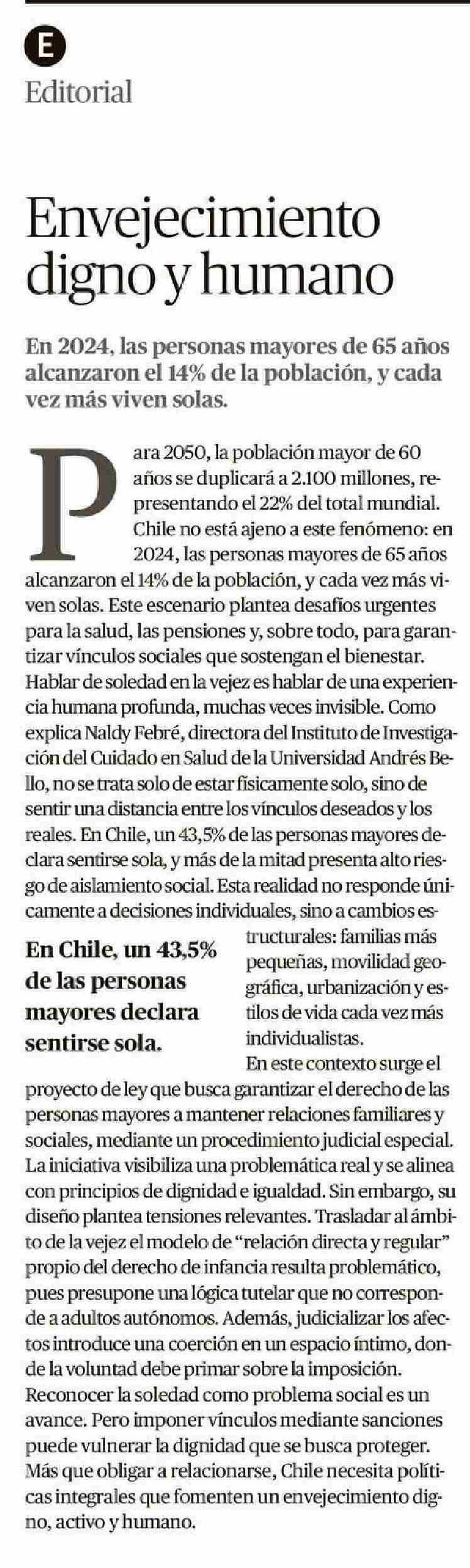 Editorial: Envejecimiento digno y humano 10-01-2026 Crónica de Chillán |