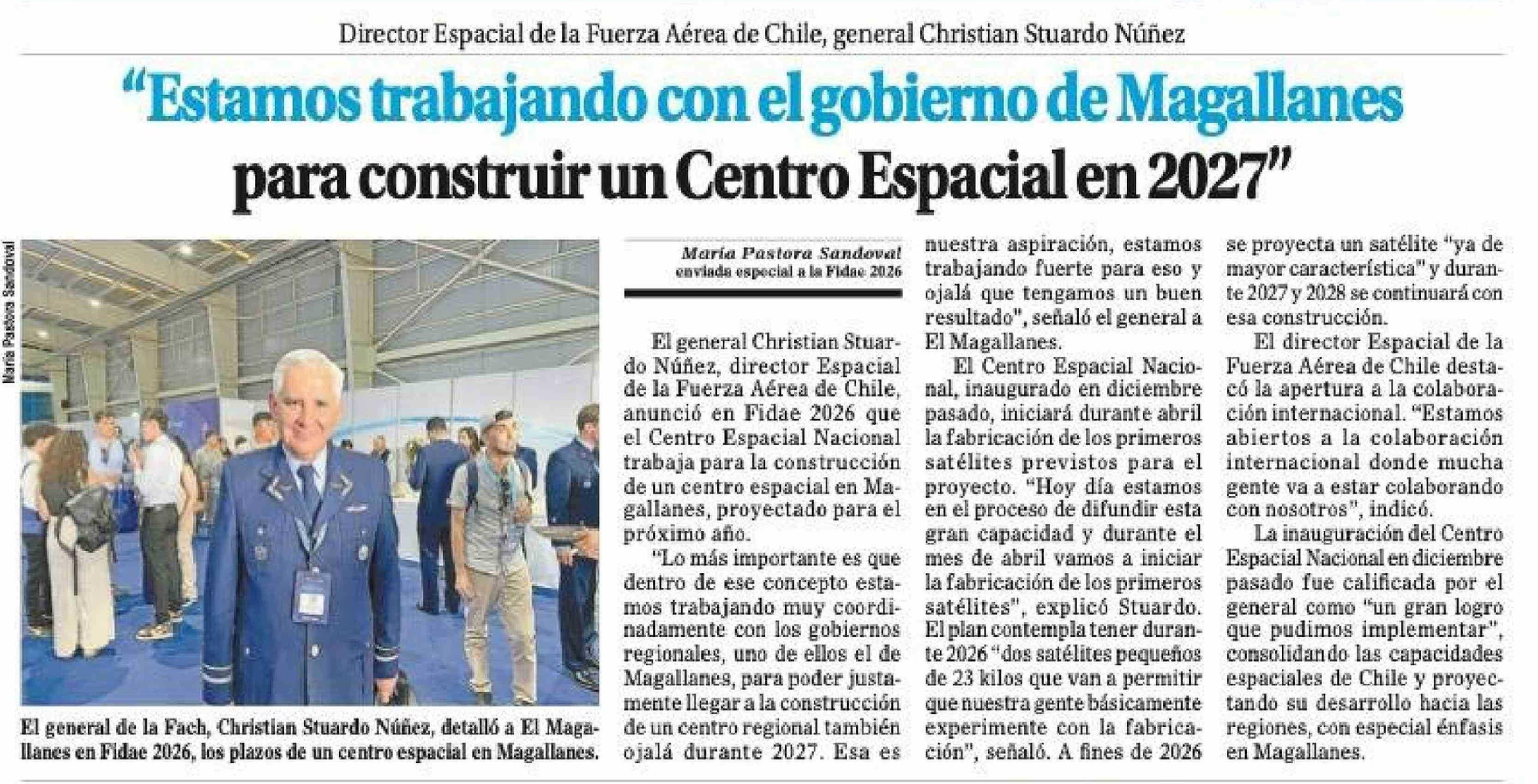 | Título: | "Estamos trabajando con el gobierno de Magallanes para construir un Centro Espacial en 2027" |
