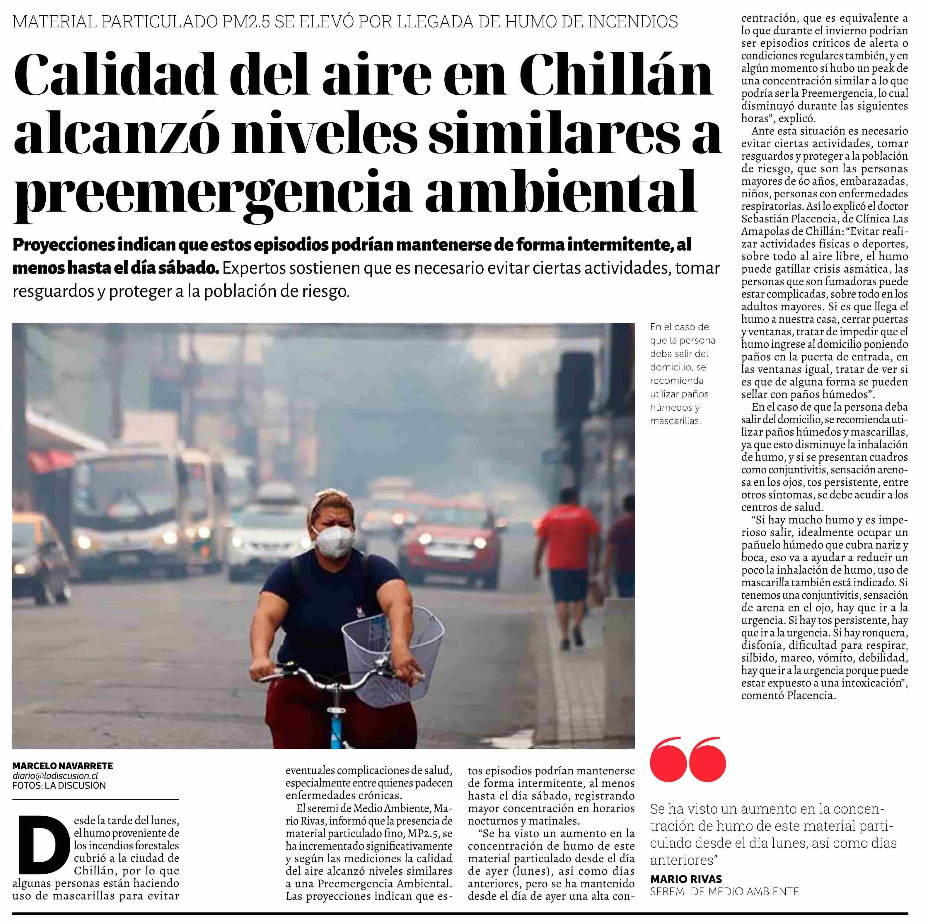 Título: Calidad del aire en Chillán alcanzó niveles similares a preemergencia ambiental