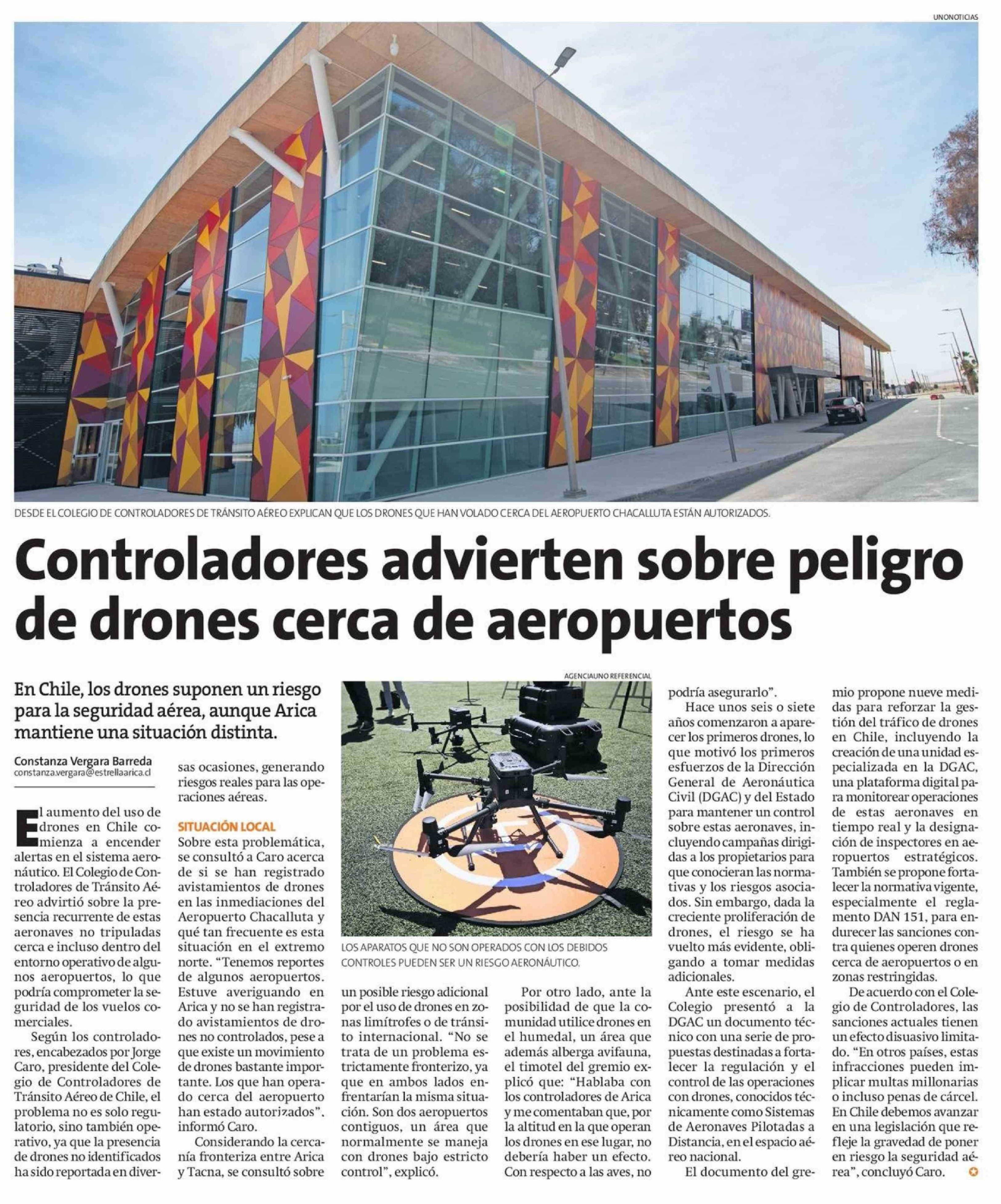 Controladores advierten sobre peligro de drones cerca de aeropuertos 22-04-2026 La Estrella de Arica |