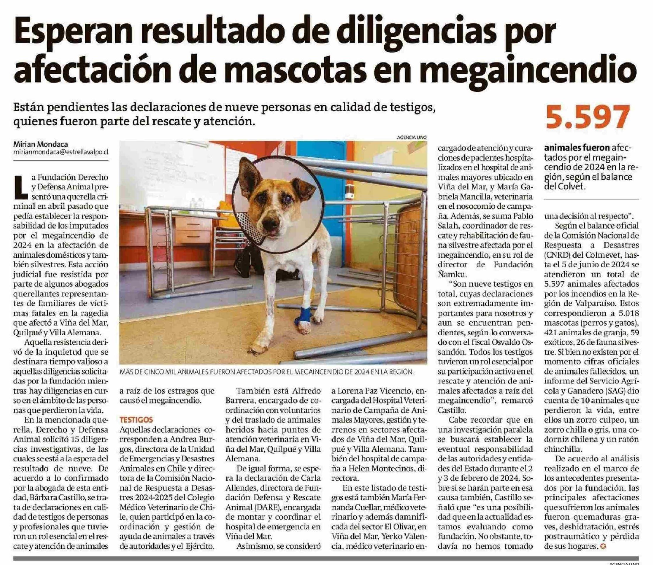 Esperan resultado de diligencias por afectación de mascotas en megaincendio 16-06-2025 La Estrella de Valparaíso |