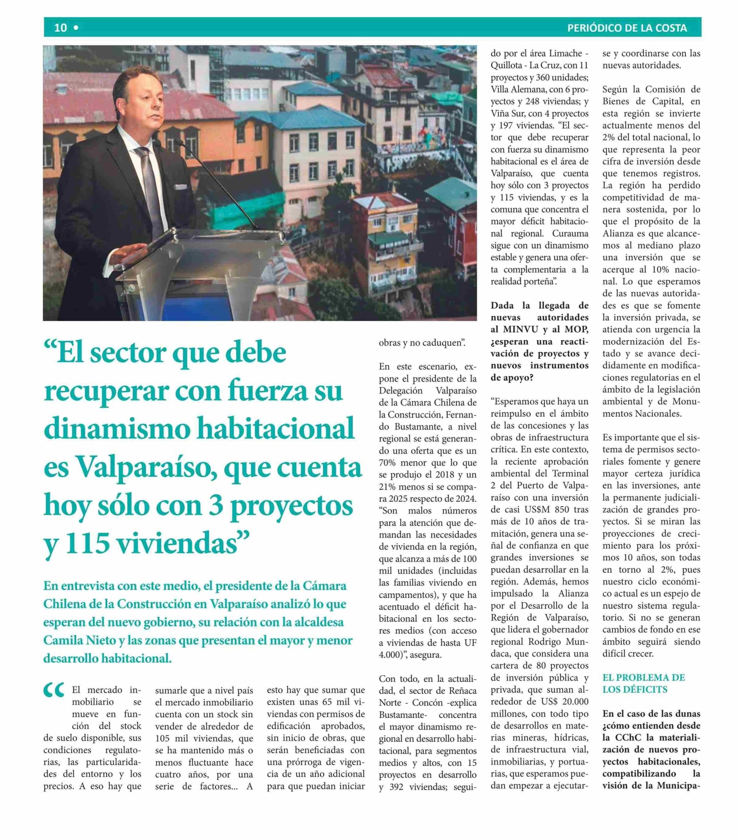 “El sector que debe recuperar con fuerza su dinamismo habitacional es Valparaíso, que cuenta hoy sólo con 3 proyectos y 115 viviendas” 24-03-2026 Periódico de la Costa |