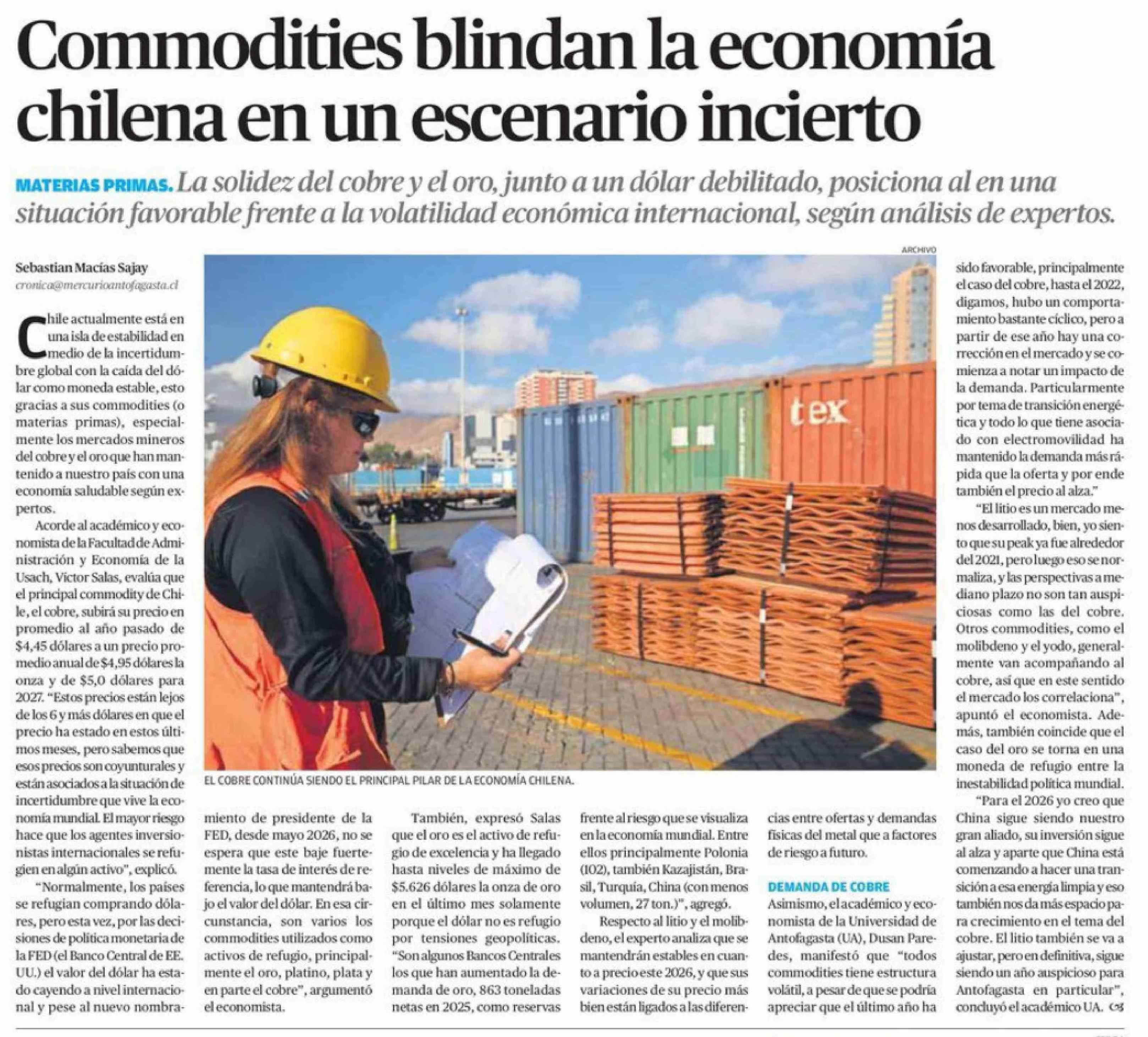 Commodities blindan la economía chilena en un escenario incierto 04-02-2026 El Mercurio de Calama |