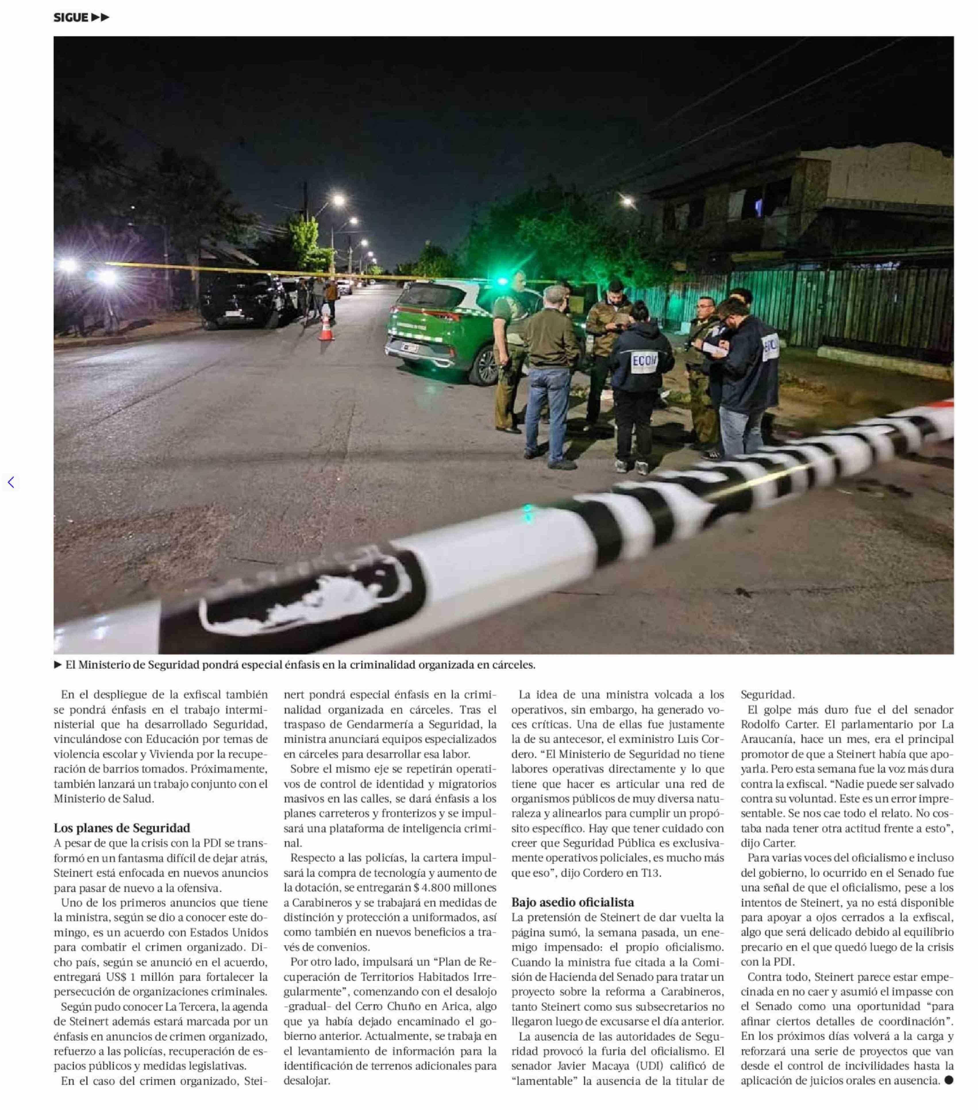 Título: Impulso legislativo y operativos en terreno: la apuesta de Steinert para retomar el control de la agenda en seguridad