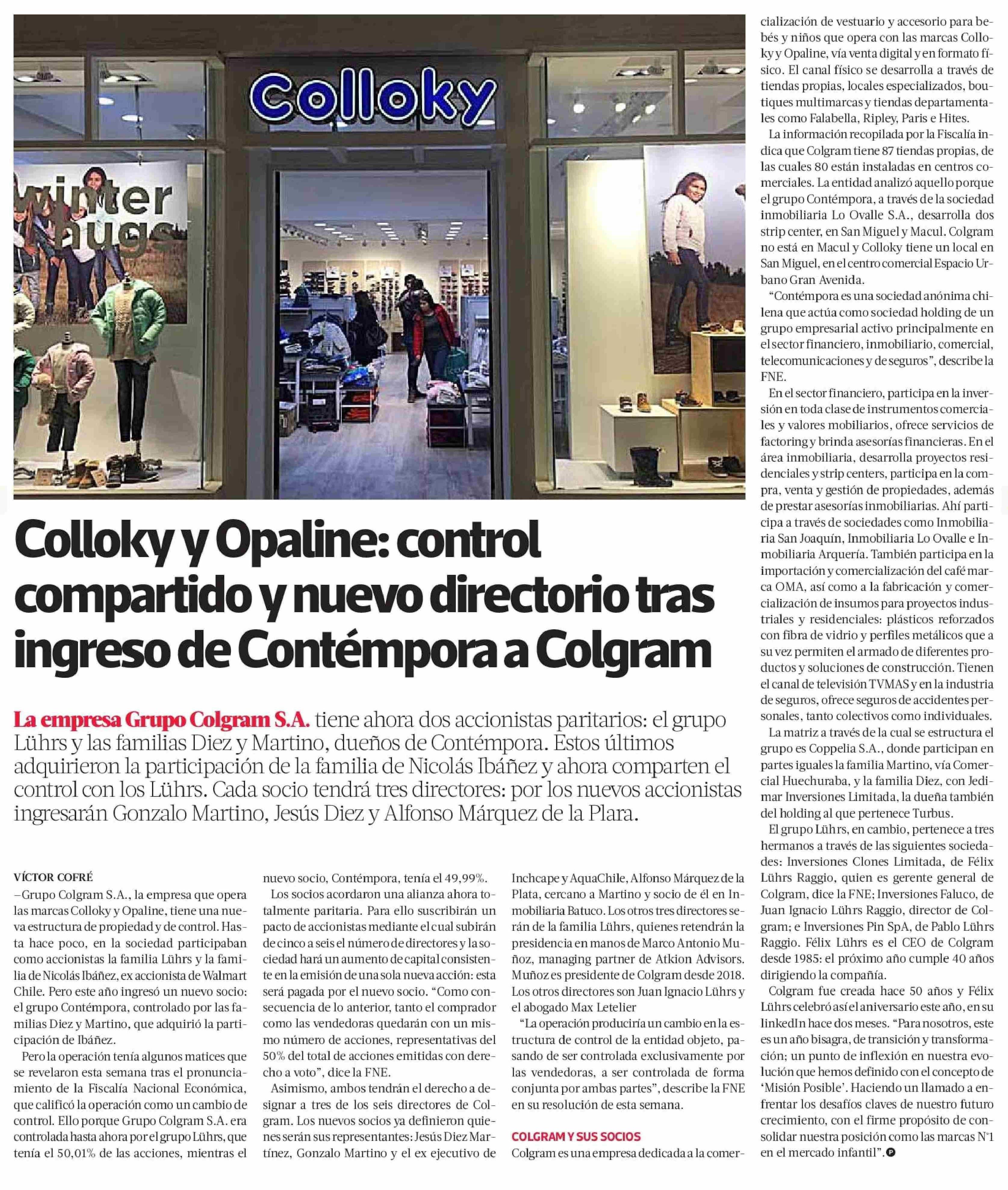 Colloky y Opaline: control compartido y nuevo directorio tras ingreso de Contémpora a Colgram 16-12-2024 La Tercera |
