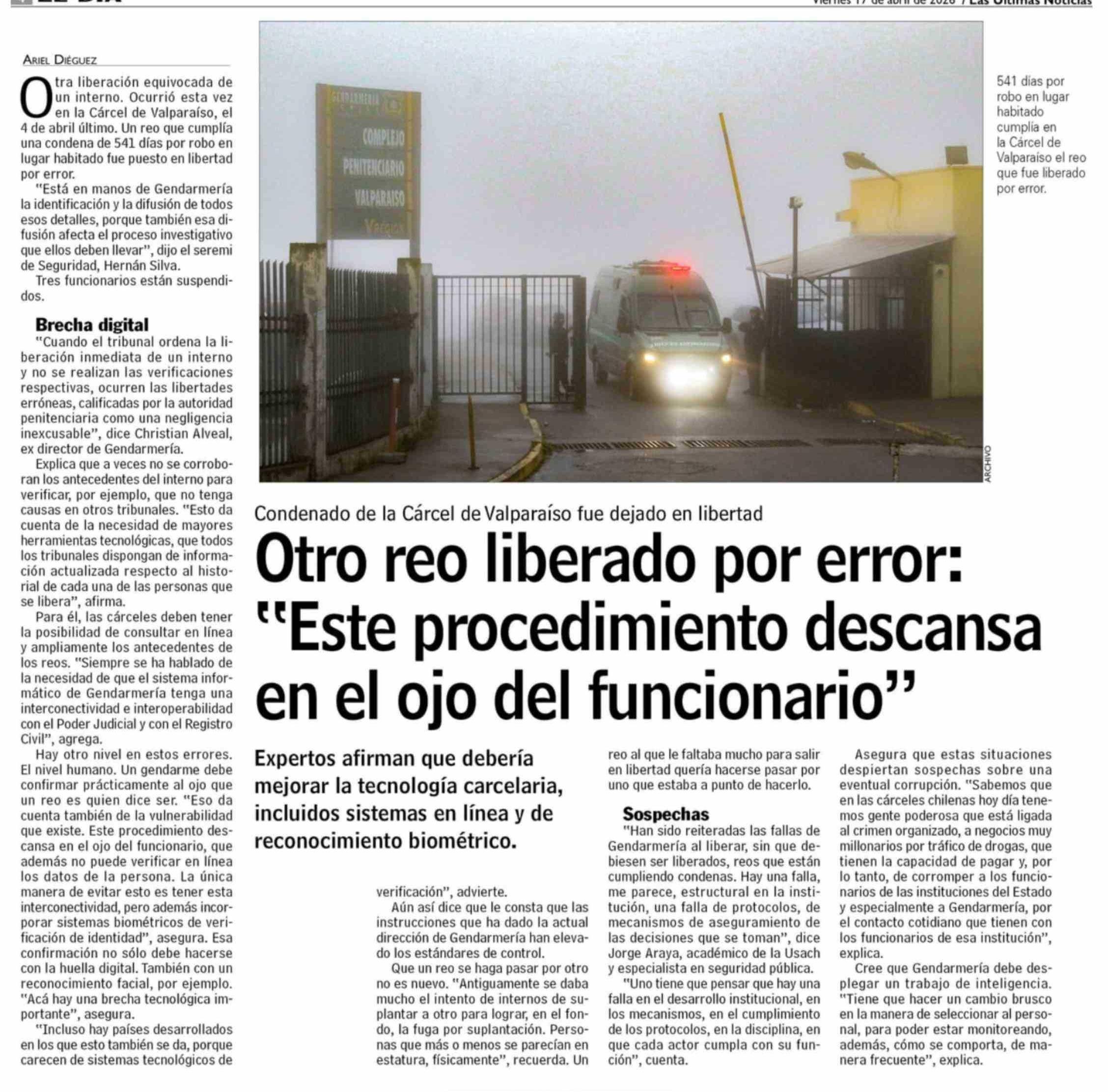Otro reo liberado por error: "Este procedimiento descansa en el ojo del funcionario" 17-04-2026 Las Últimas Noticias |