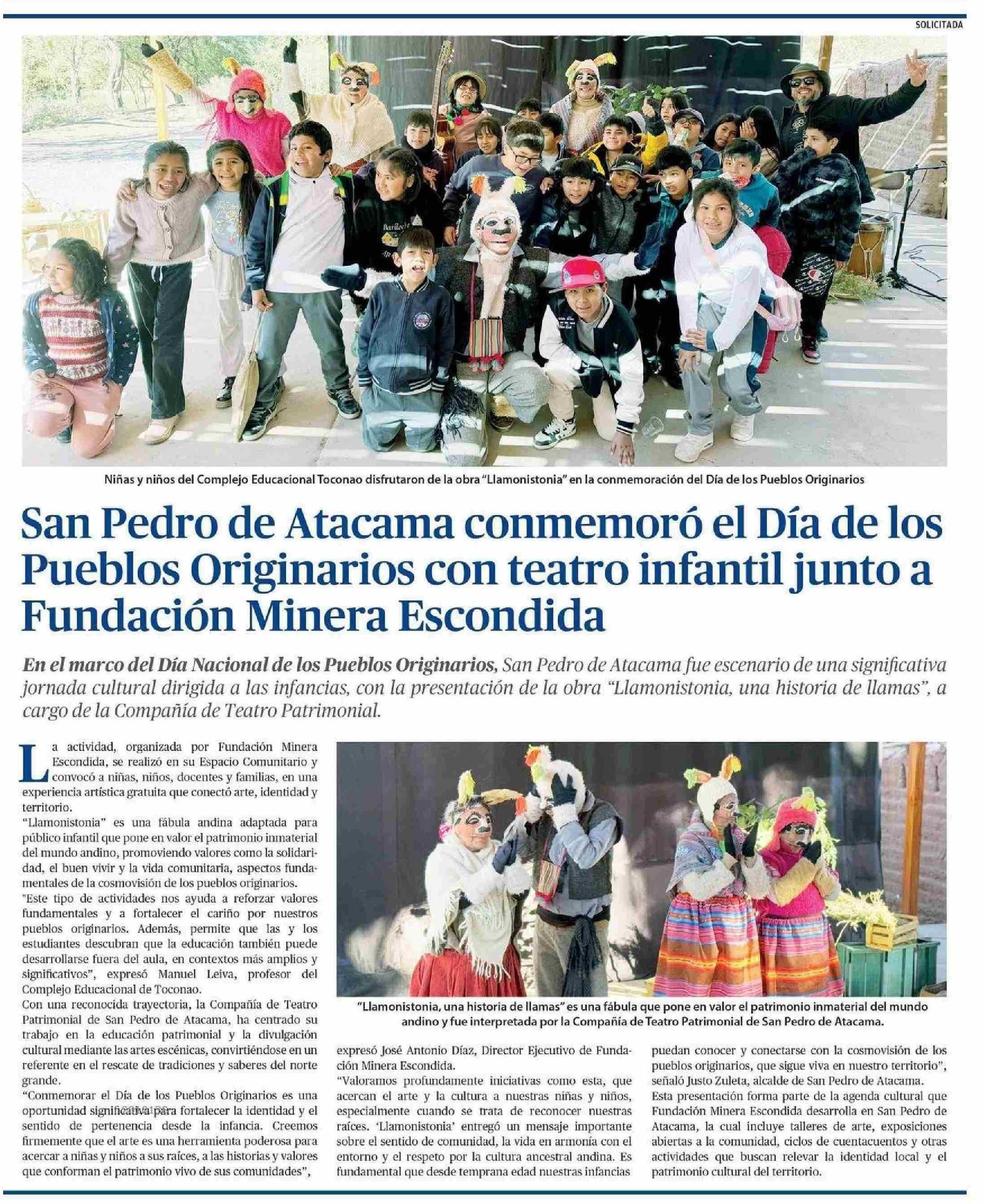 Título: San Pedro de Atacama conmemoró el Día de los Pueblos Originarios con teatro infantil junto a Fundación Minera Escondida