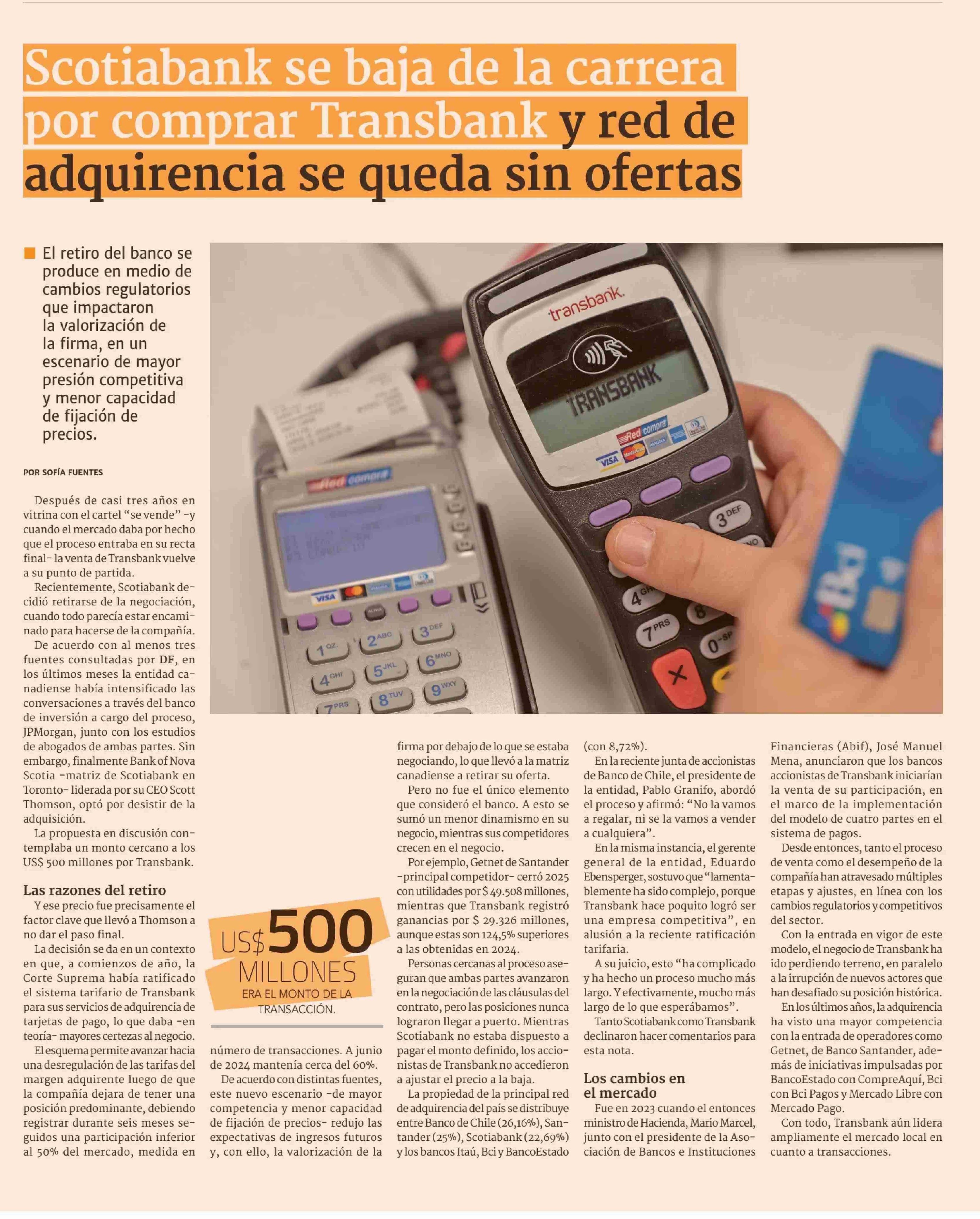 Título: Scotiabank se baja de la carrera por comprar Transbank y red de adquirencia se queda sin ofertas