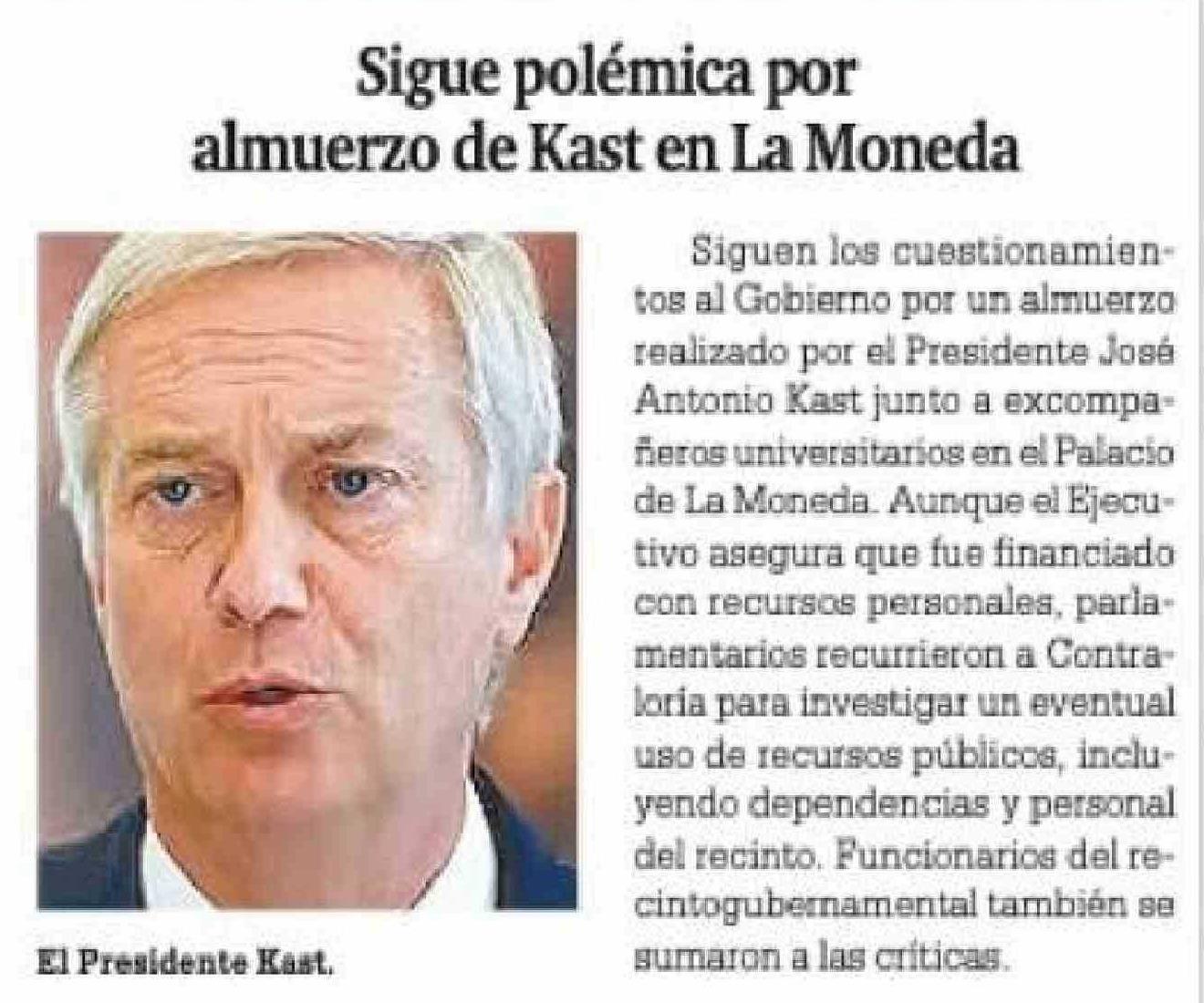 | Título: | Sigue polémica por almuerzo de Kast en La Moneda |