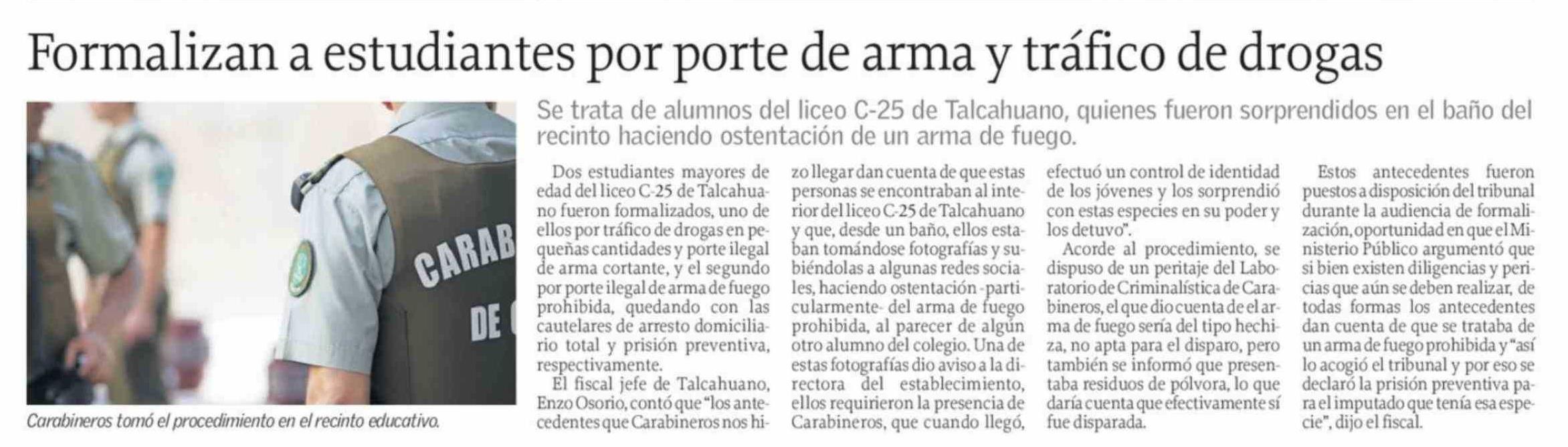 Título: Formalizan a estudiantes por porte de arma y tráfico de drogas