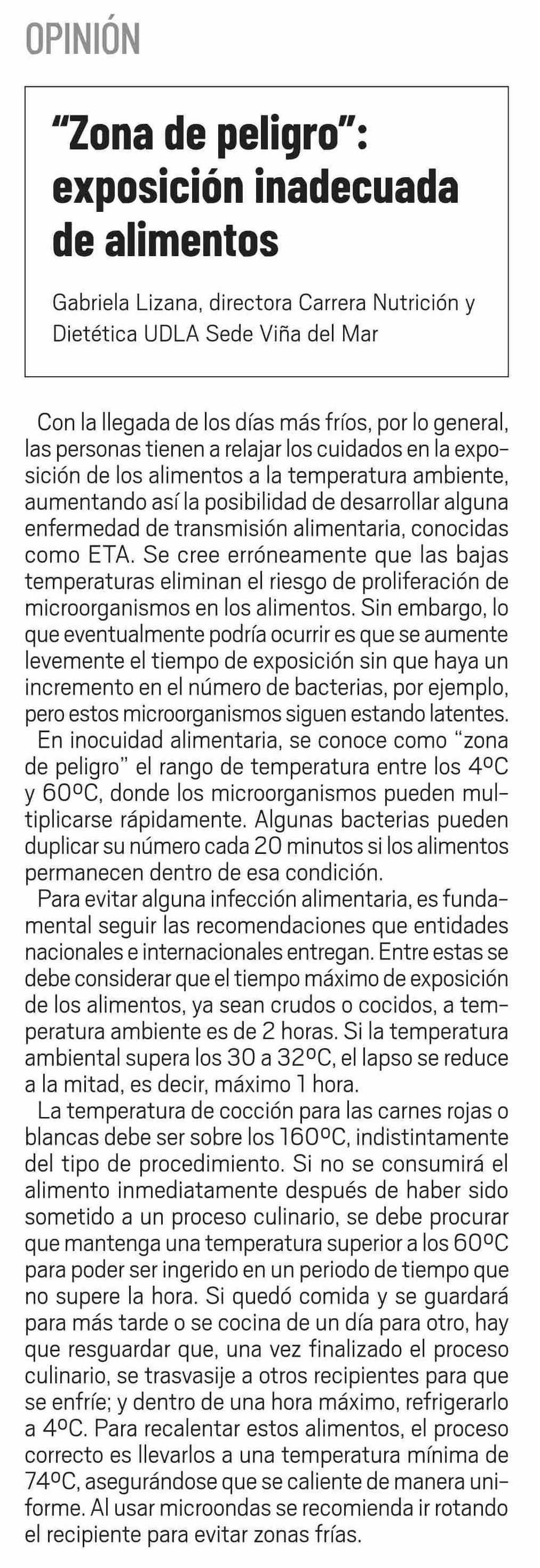 COLUMNAS DE OPINIÓN: "Zona de peligro": exposición inadecuada de alimentos 28-05-2025 El Día |