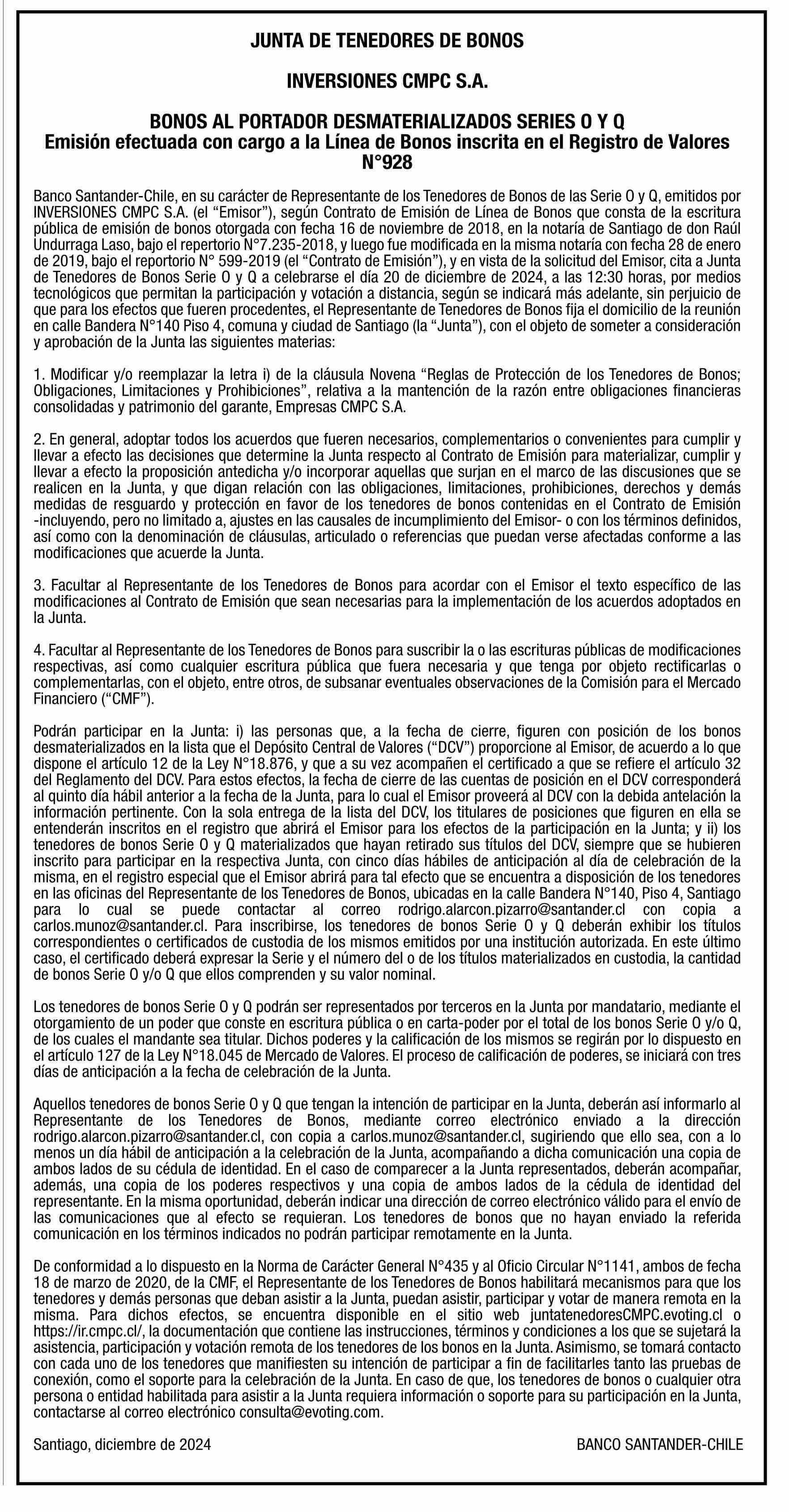 Extractos INVERSIONES CMPC S.A. 02-12-2024 El Mercurio |