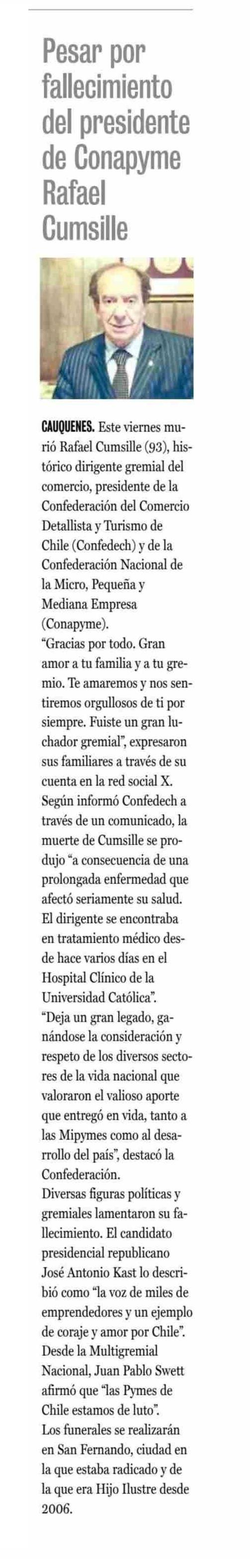 Pesar por fallecimiento del presidente de Conapyme Rafael Cumsille 21-06-2025 La Prensa de Curicó |
