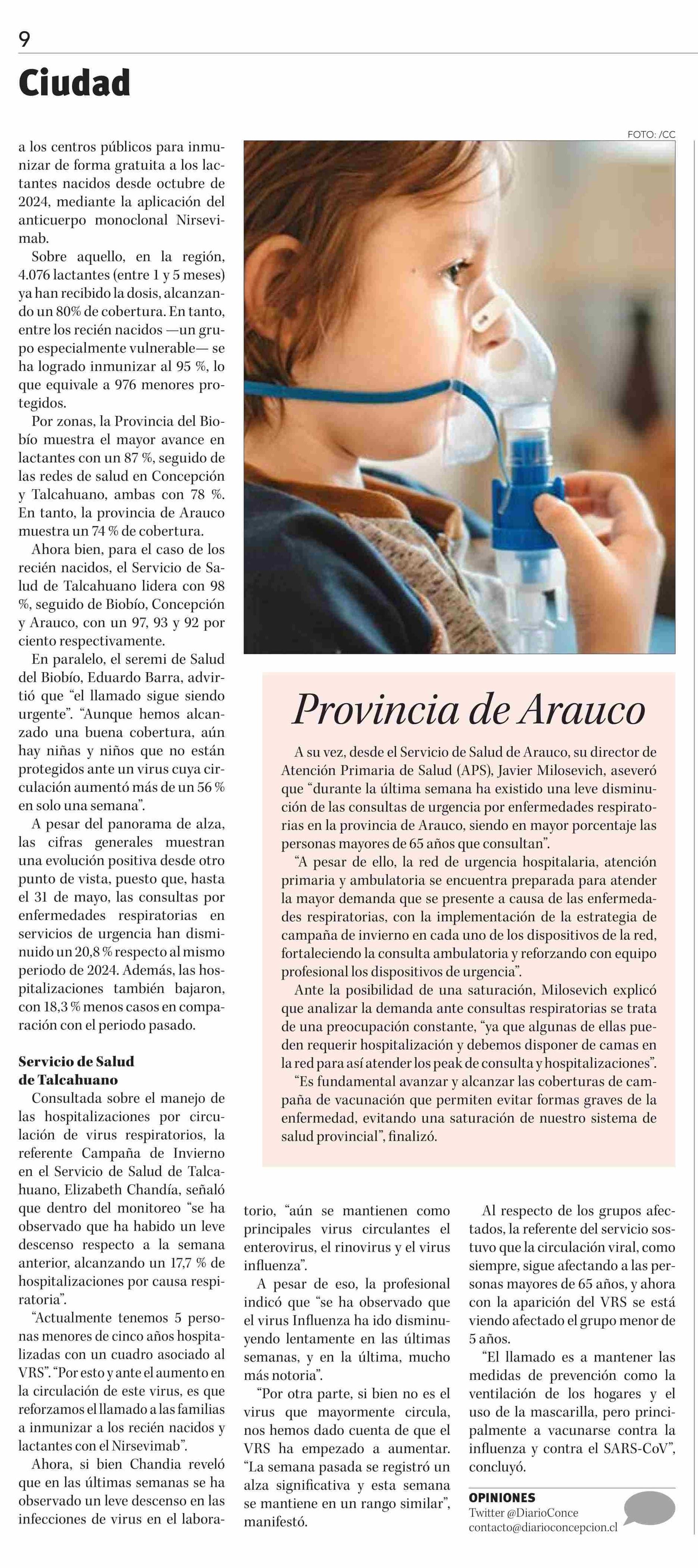 Hospitalizaciones por Virus Sincicial en Biobío: Redes de salud se preparan ante posible aumento en su circulación 10-06-2025 Diario Concepción |