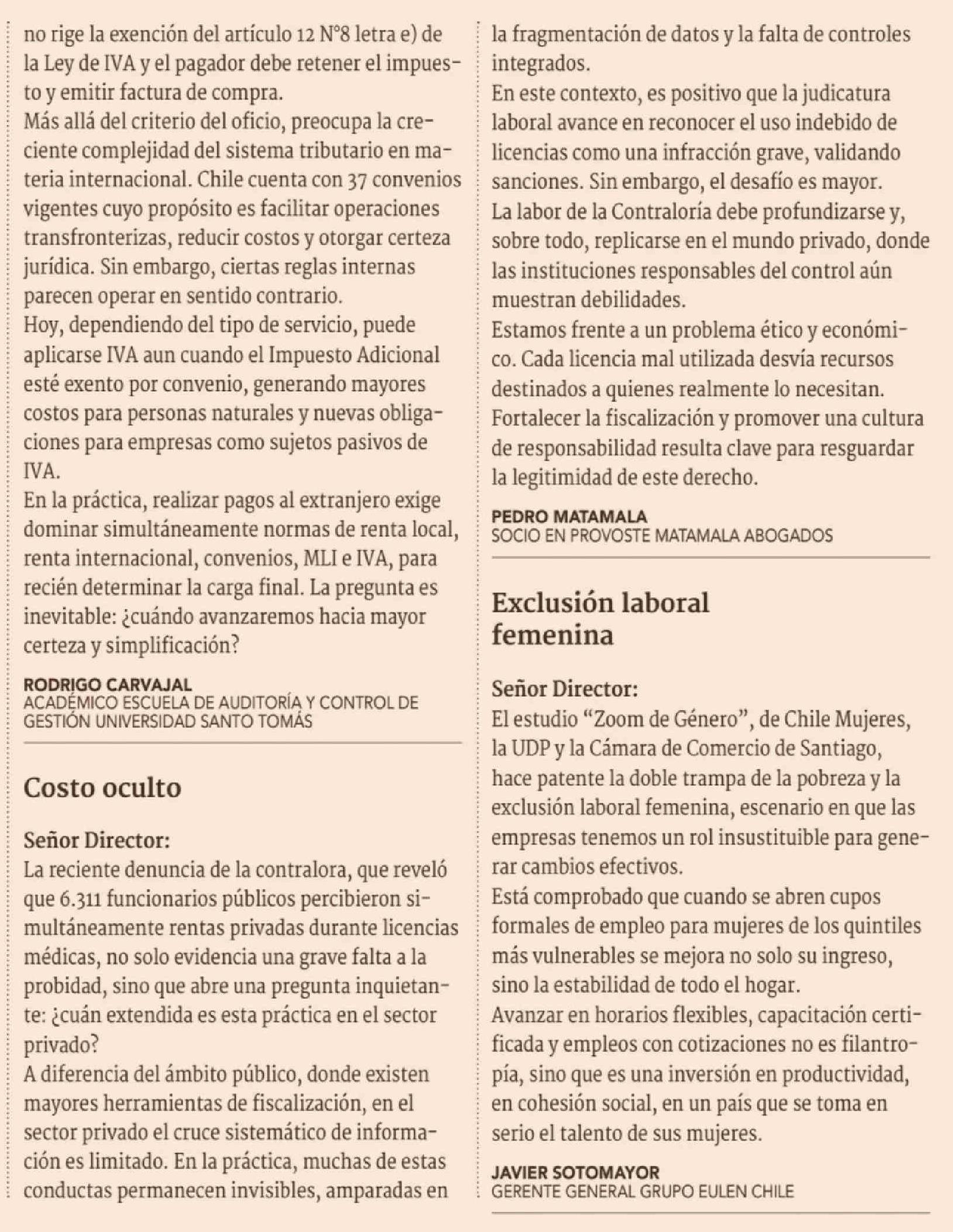 Cartas: Costo oculto 01-04-2026 Diario Financiero |