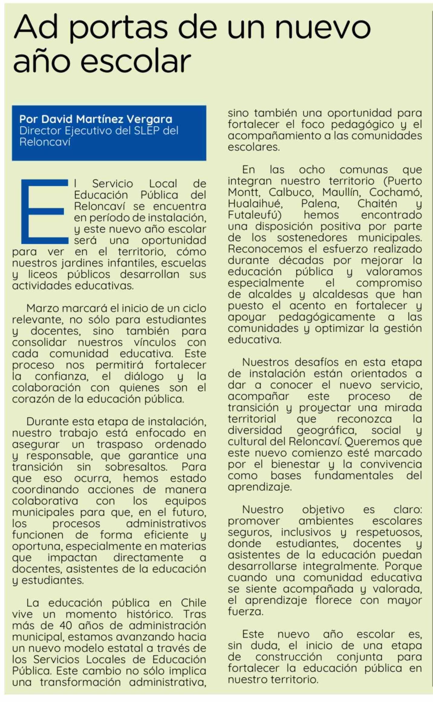 Título: Columnas de Opinión: Ad portas de un nuevo año escolar
