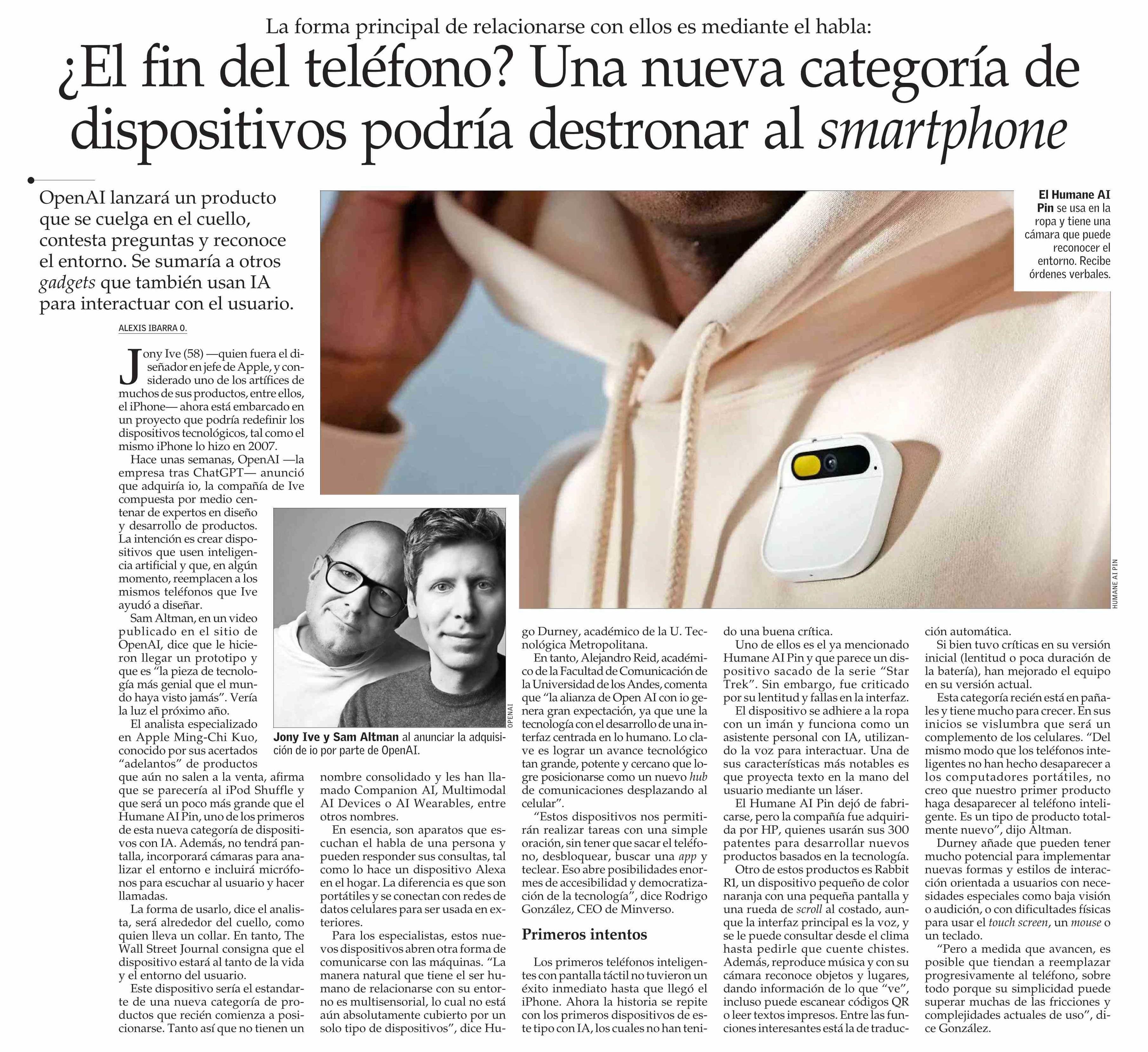 ¿El fin del teléfono? Una nueva categoría de dispositivos podría destronar al smartphone 21-06-2025 El Mercurio |