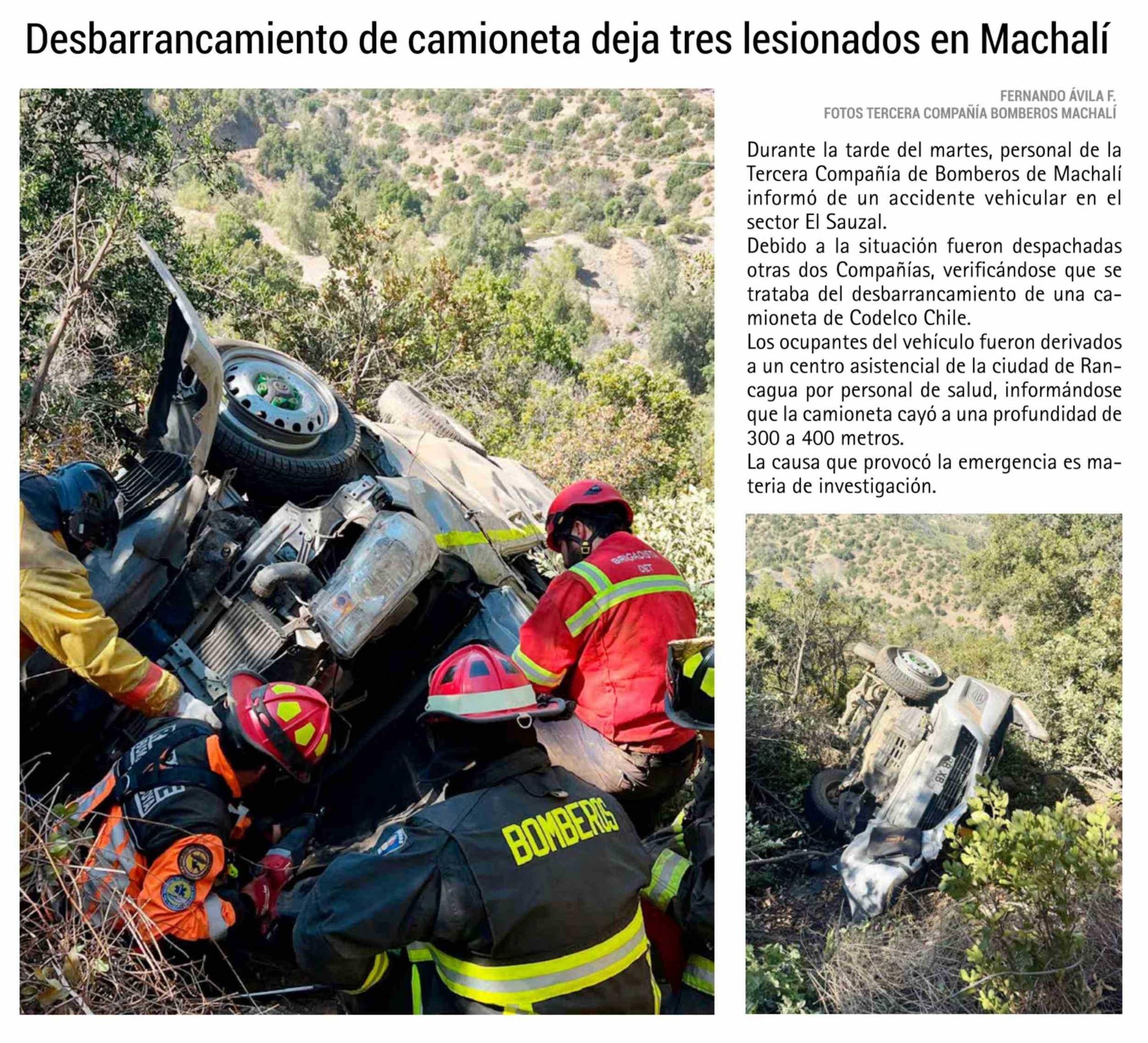 | Título: | Desbarrancamiento de camioneta deja tres lesionados en Machalí |