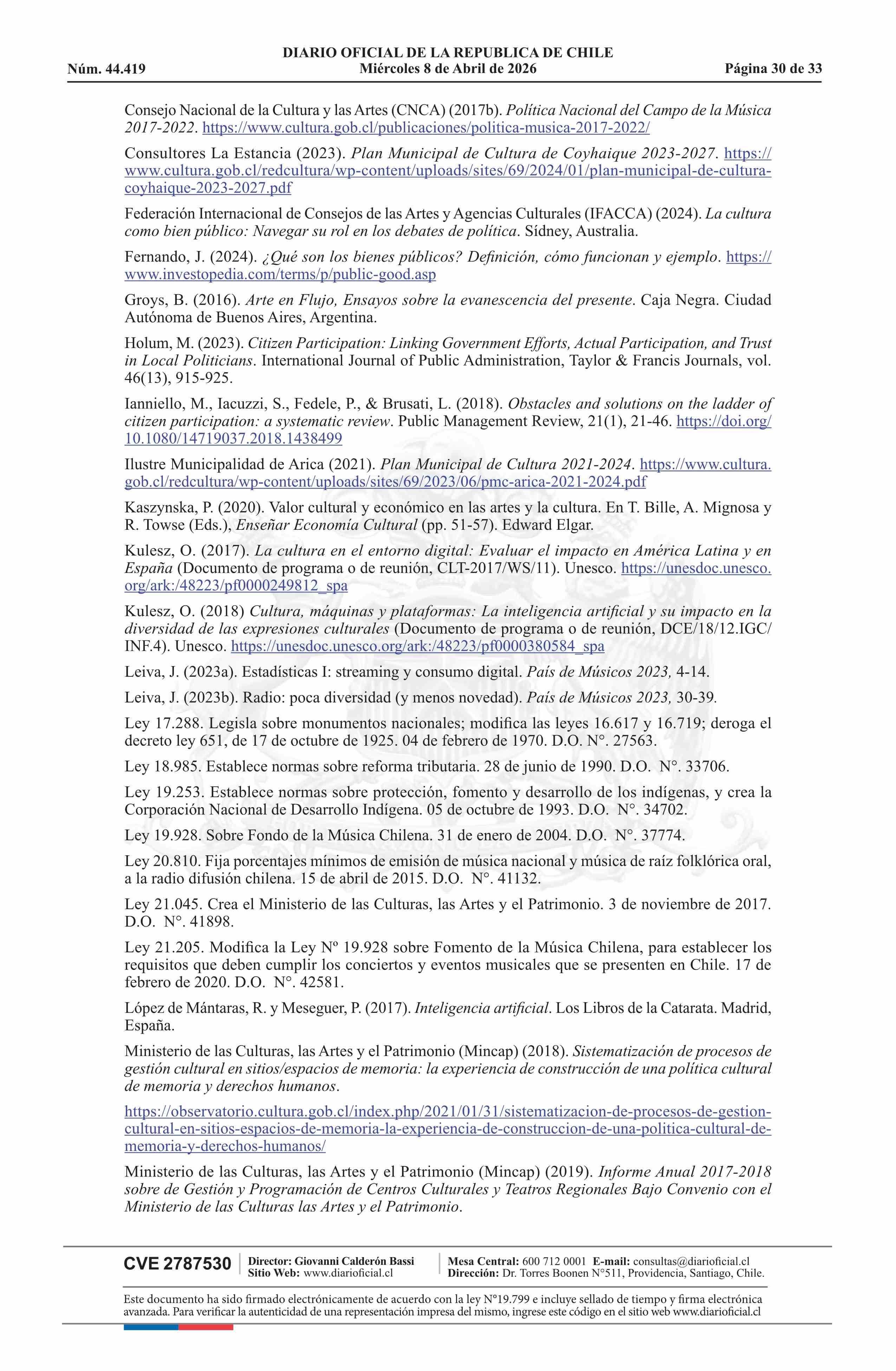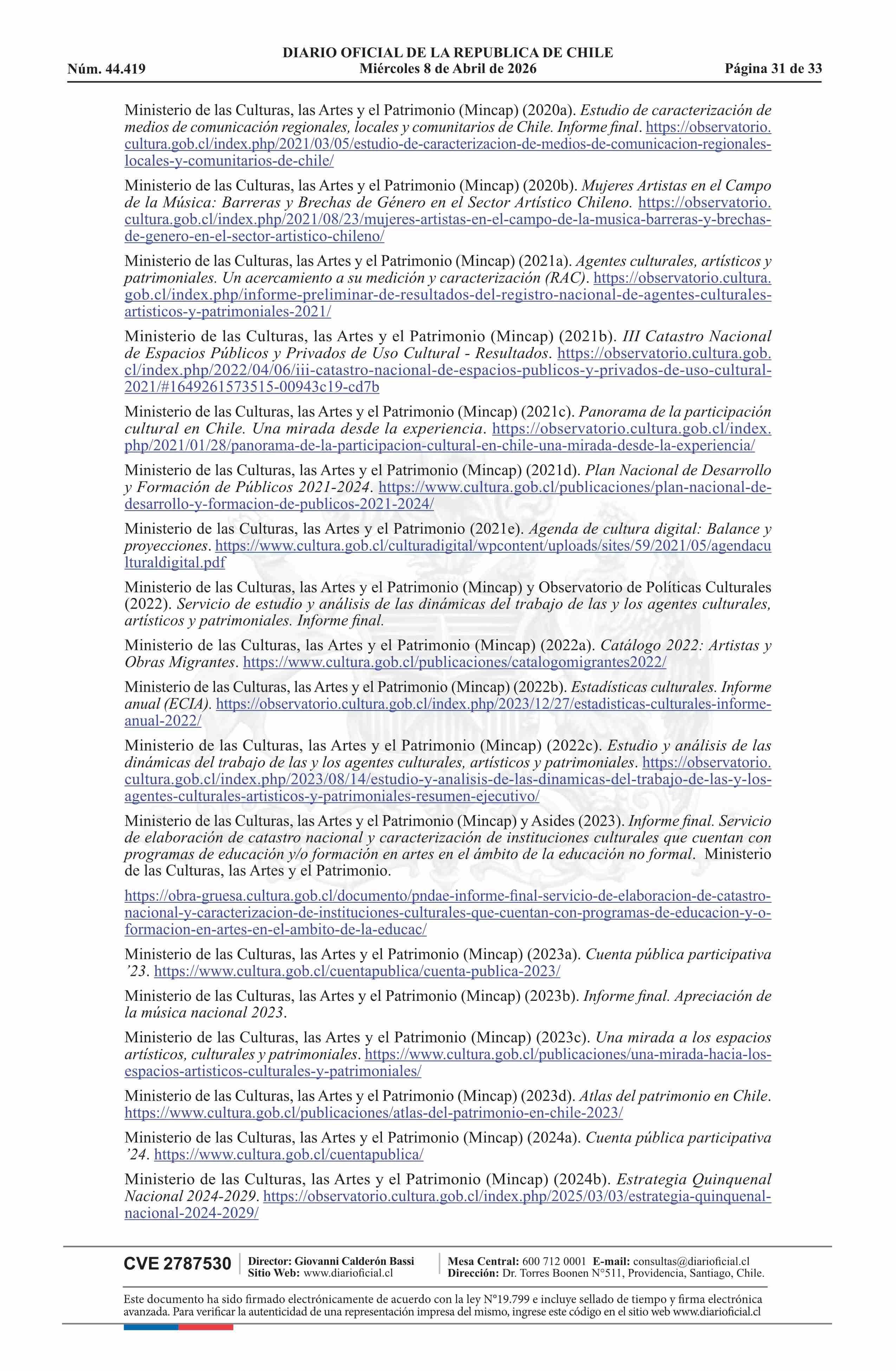 Resolución exenta número 789, de 2026.- Aprueba Política Nacional de Música 2025-2030 08-04-2026 Diario Oficial Edición Electrónica |