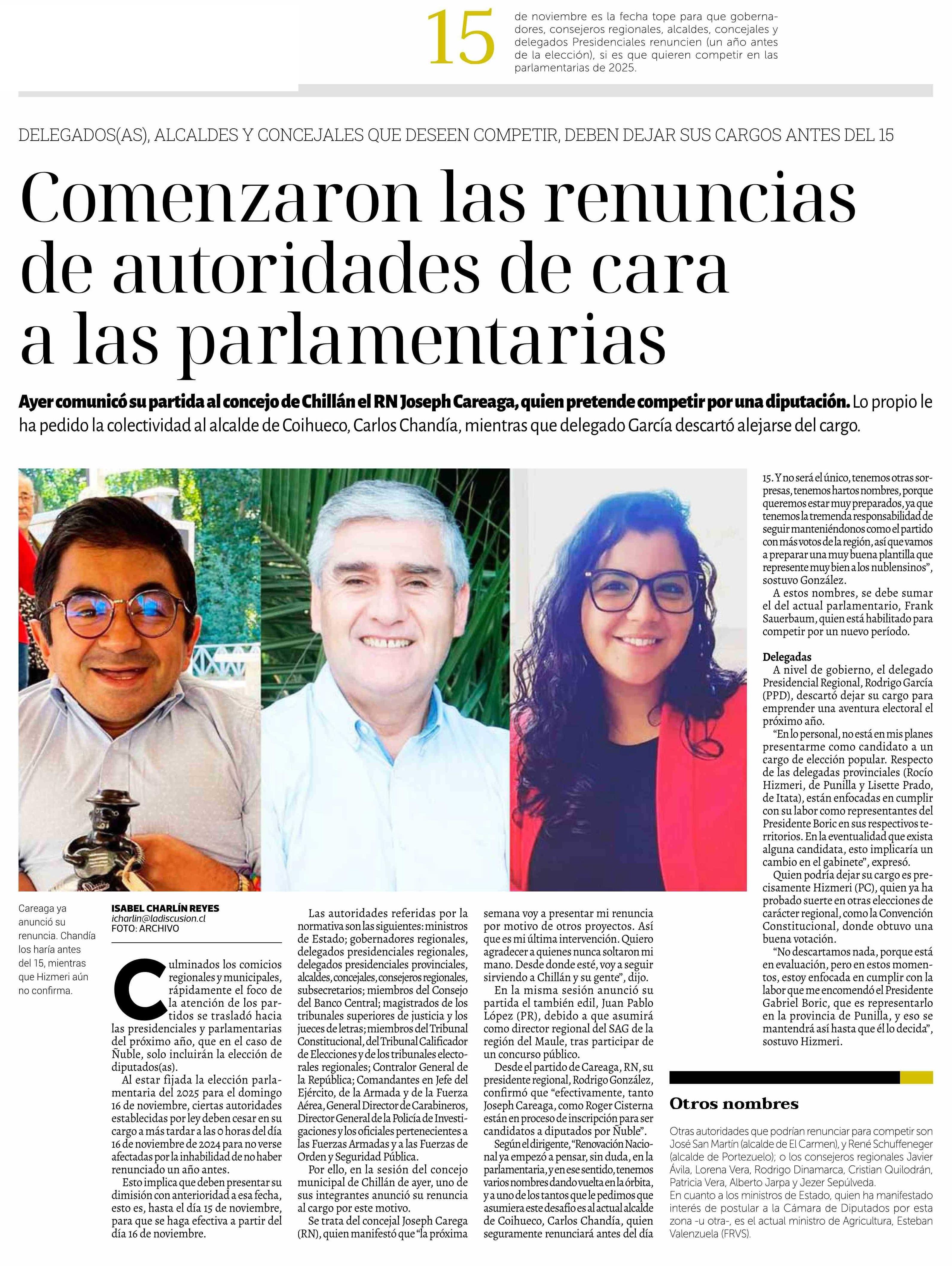 Comenzaron las renuncias de autoridades de cara a las parlamentarias 06-11-2024 La Discusión |