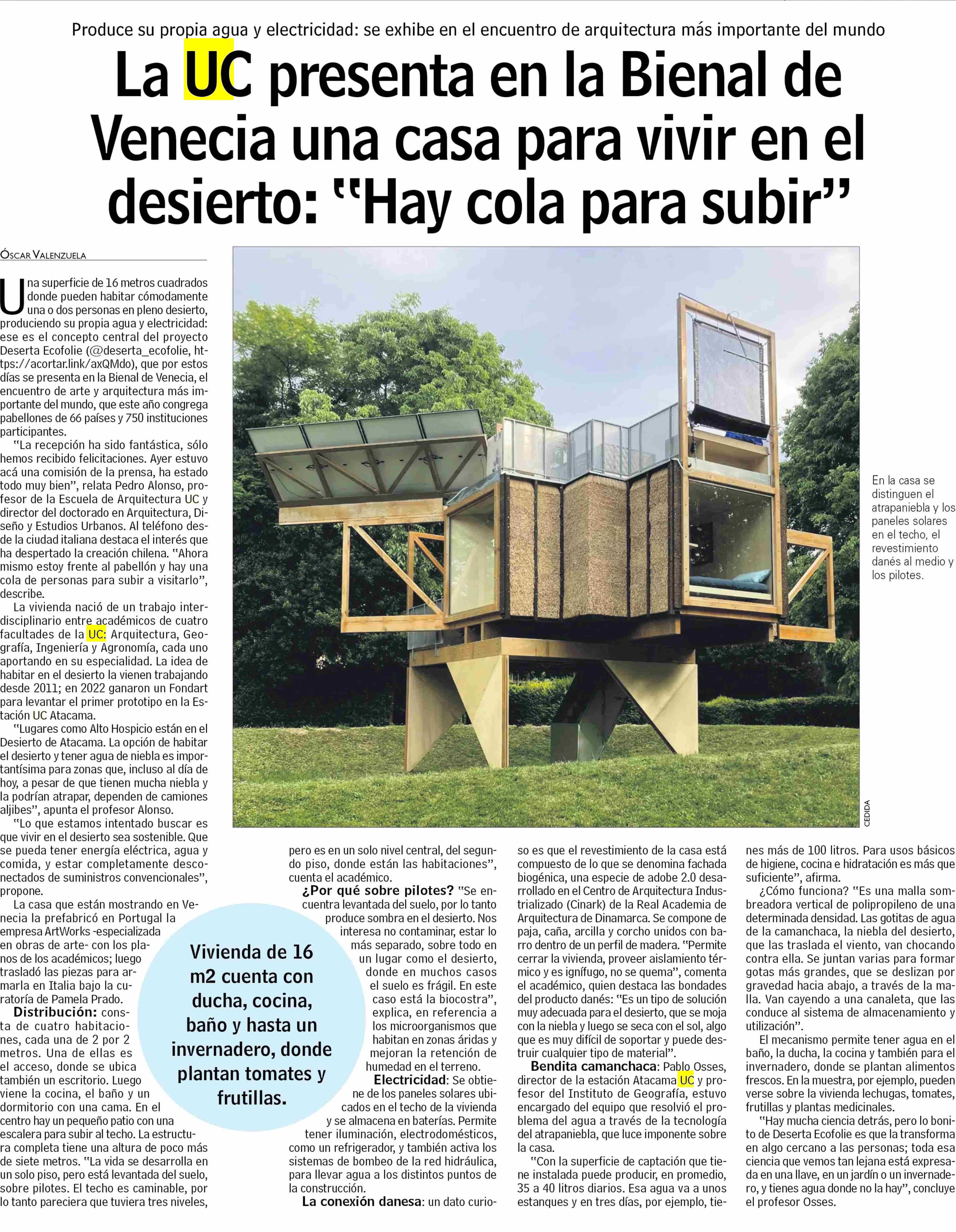 | Título: | La UC presenta en la Bienal de Venecia una casa para vivir en el desierto: "Hay cola para subir" |