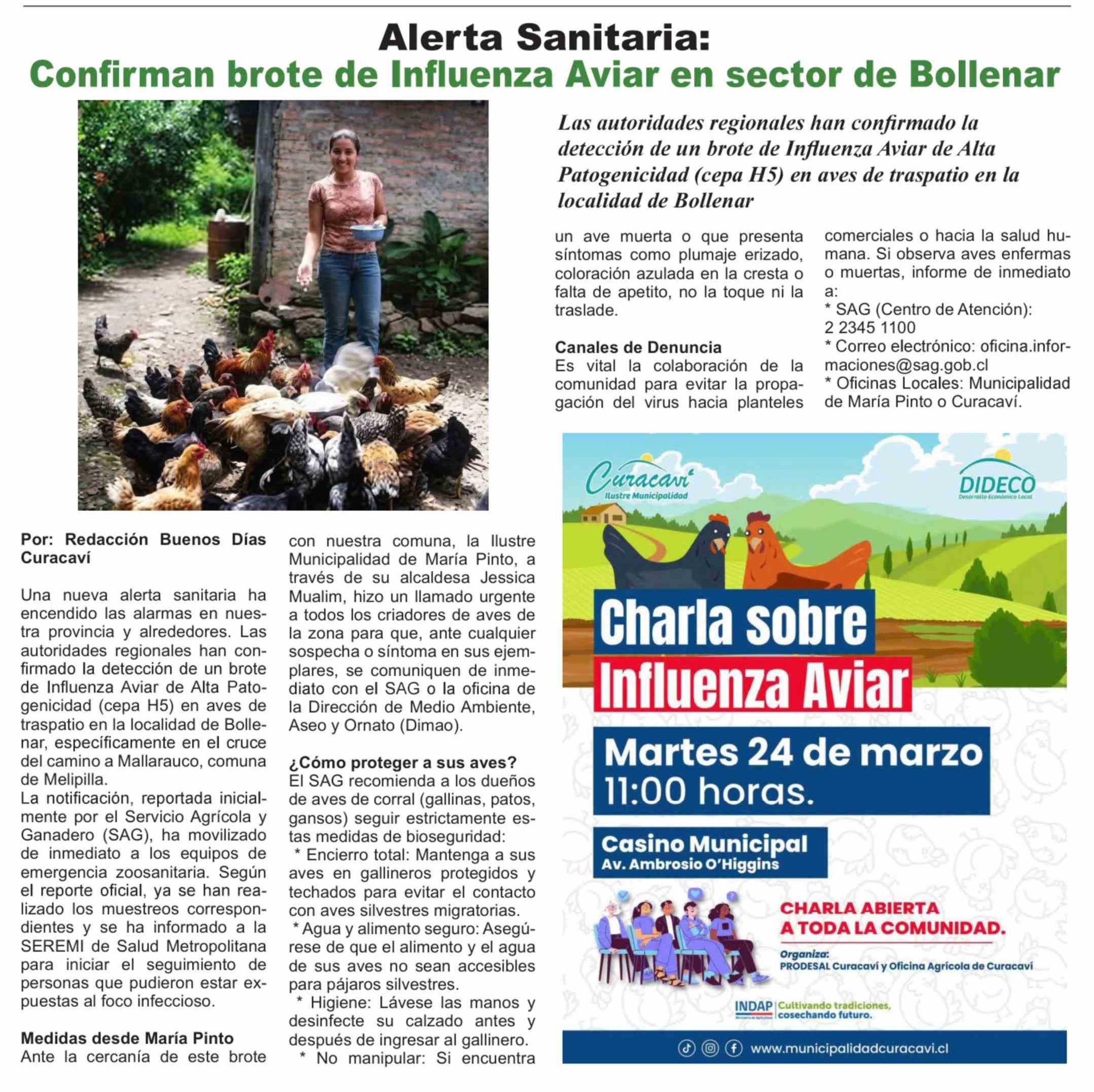 Título: Alerta Sanitaria: Confirman brote de Influenza Aviar en sector de Bollenar