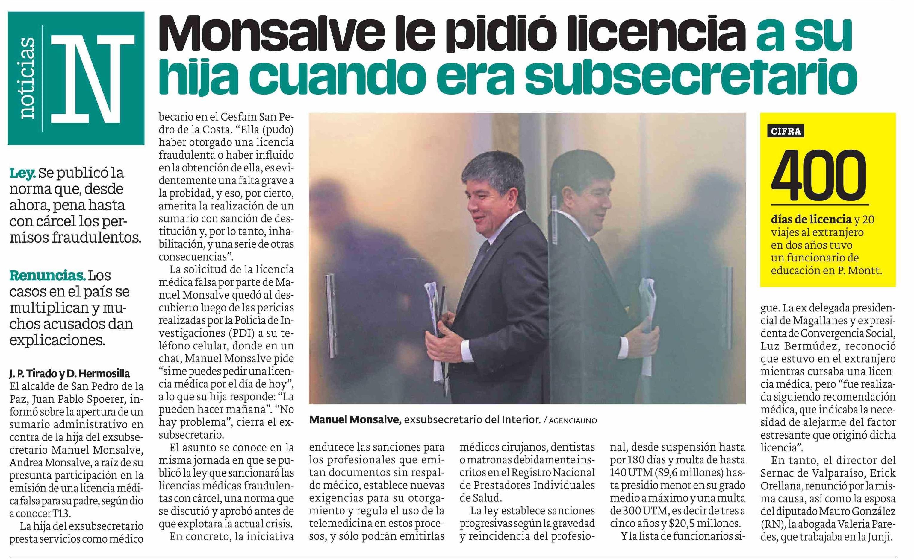 | Título: | Monsalve le pidió licencia a su hija cuando era subsecretario |