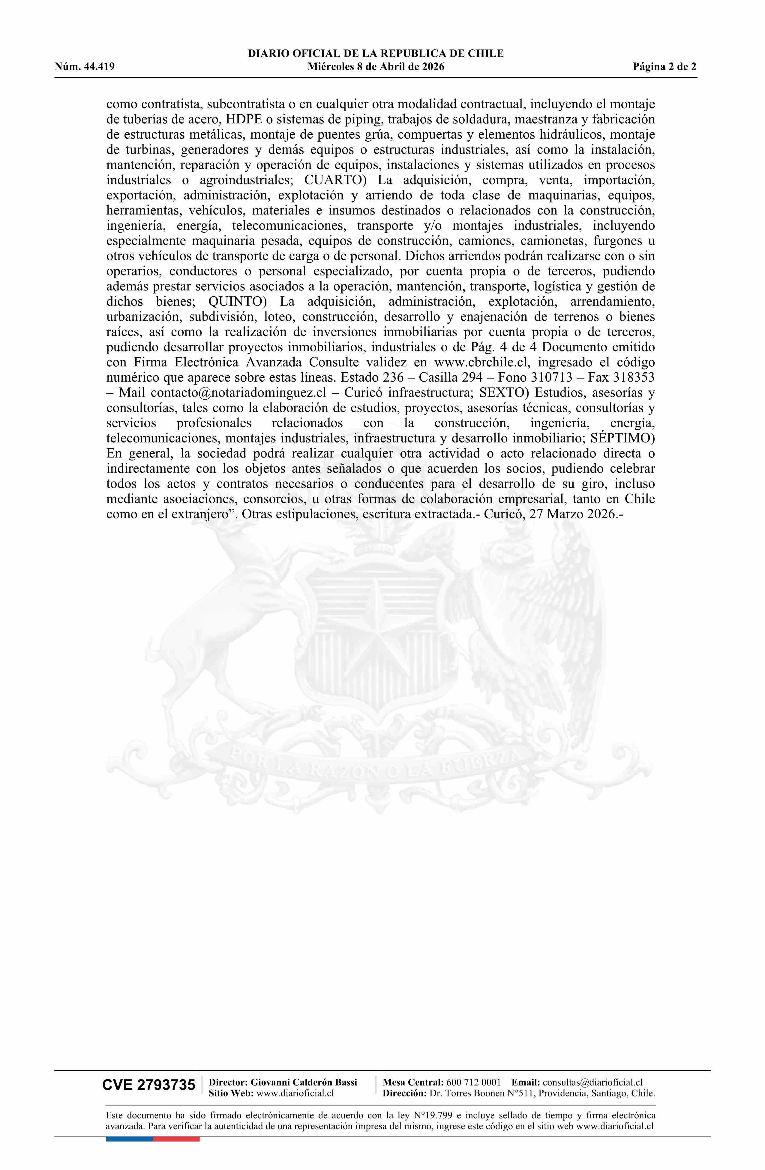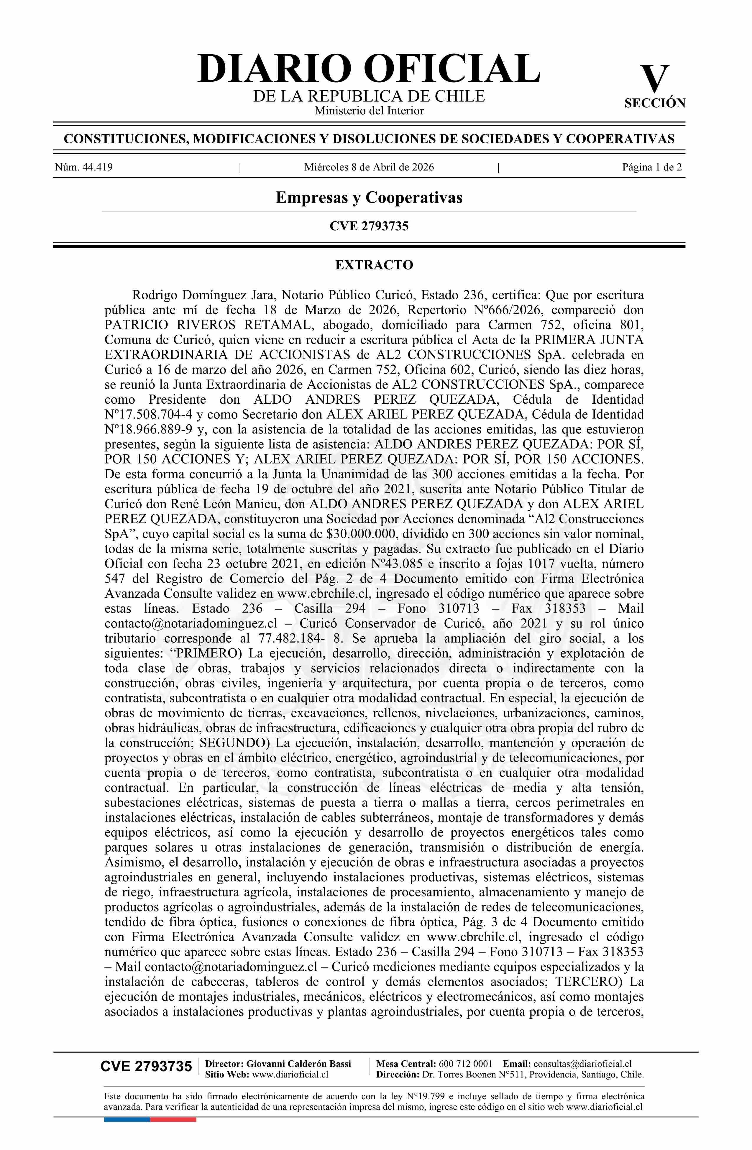 AL2 CONSTRUCCIONES SpA 77.482.184-8* 08-04-2026 Diario Oficial Edición Electrónica |