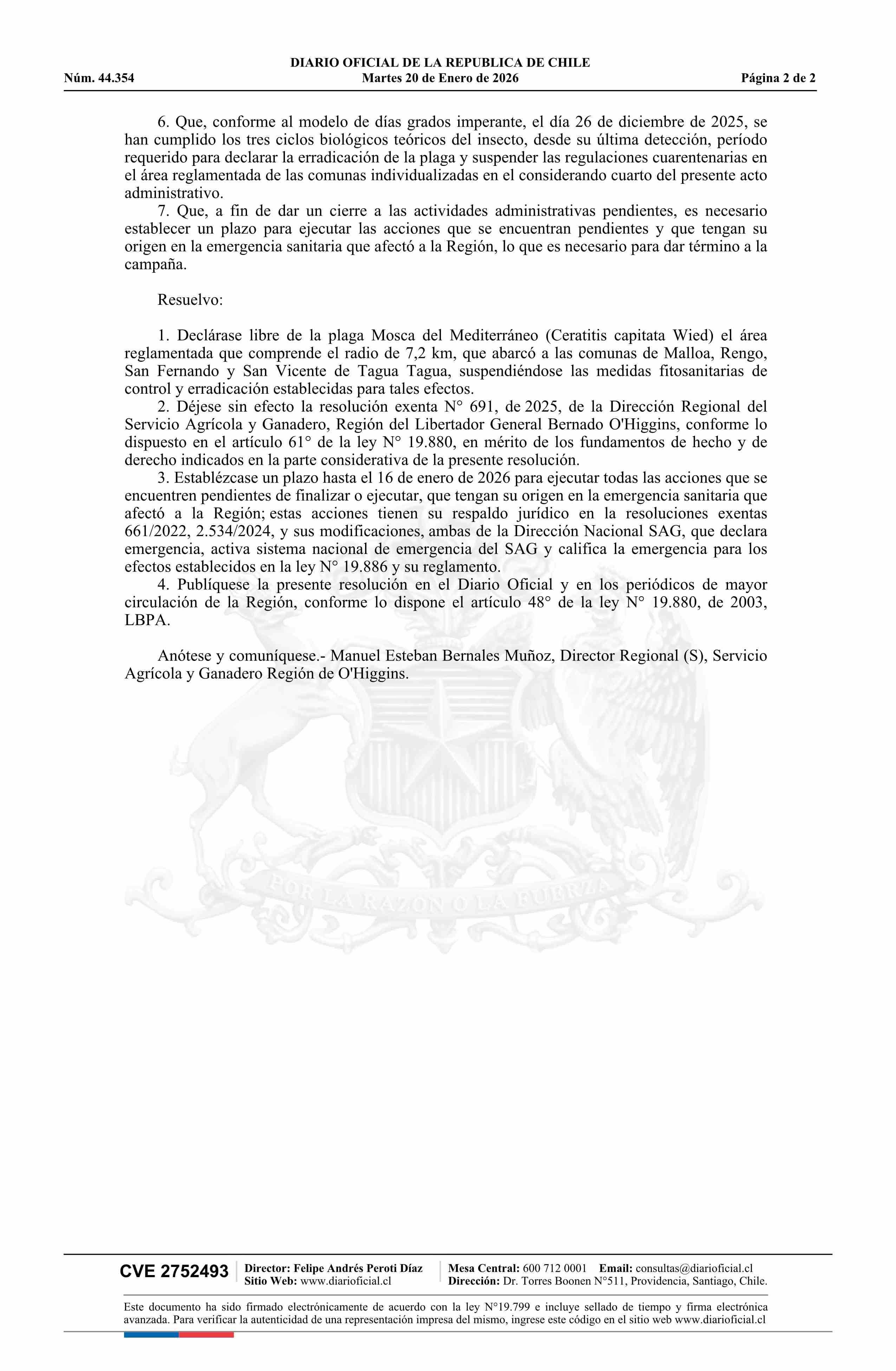 Título: Resolución exenta número 2.863, de 2025.- Declara libre de Mosca del Mediterráneo (Ceratitis capitata Wied) el área reglamentada que indica