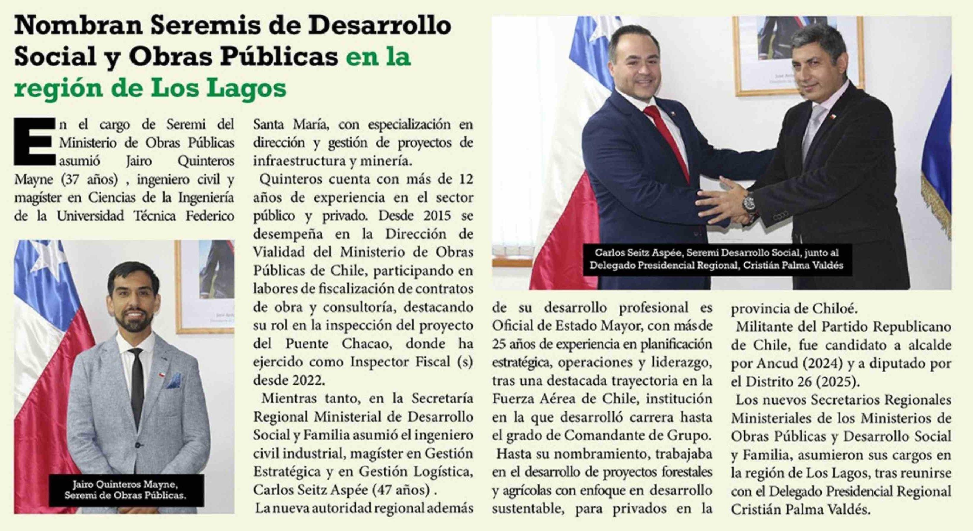 Título: Nombran Seremis de Desarrollo Social y Obras Públicas en la región de Los Lagos
