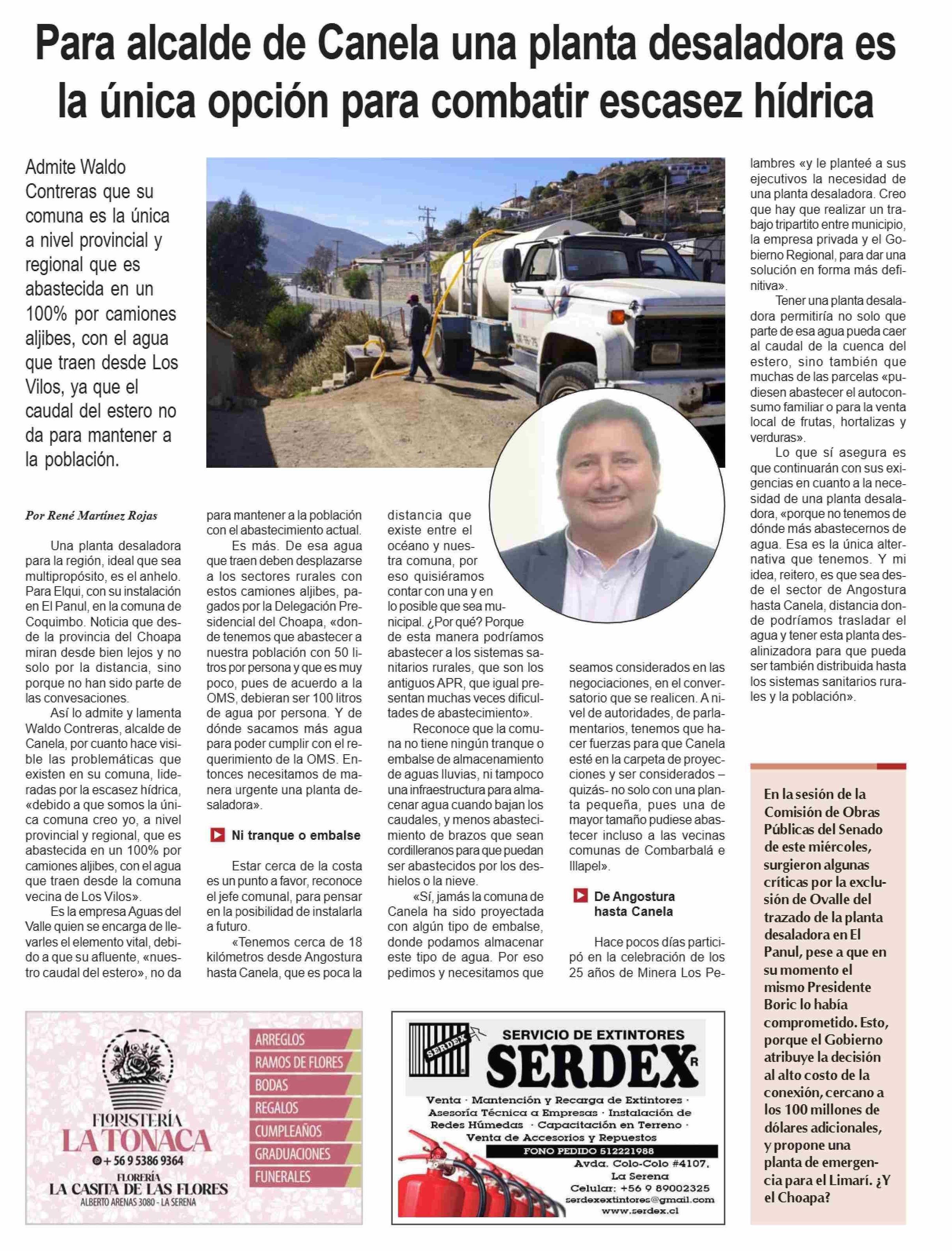 Para alcalde de Canela una planta desaladora es la única opción para combatir escasez hídrica 30-05-2025 Diario la Región |