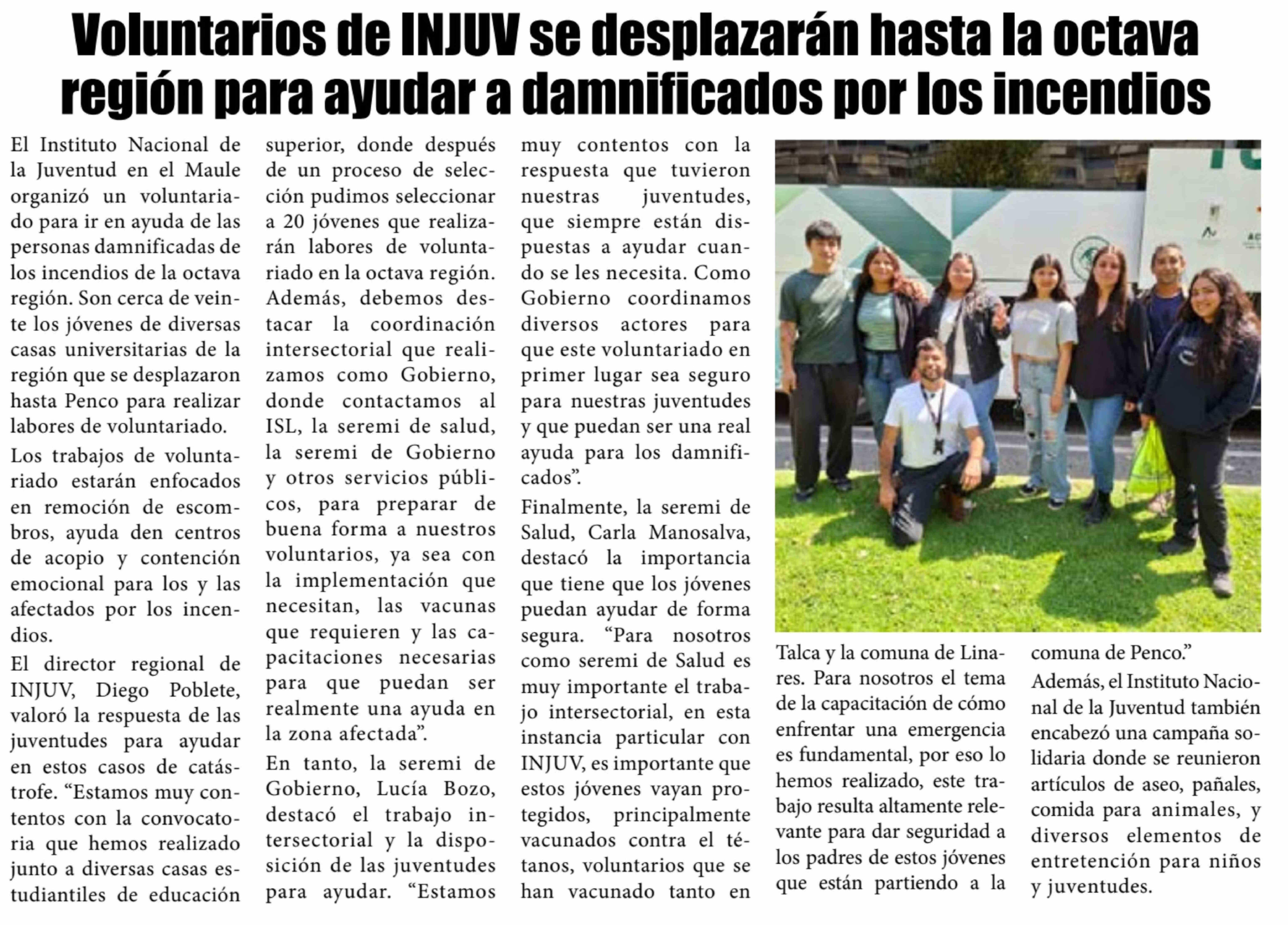 | Título: | Voluntarios de INJUV se desplazarán hasta la octava región para ayudar a damnificados por los incendios |