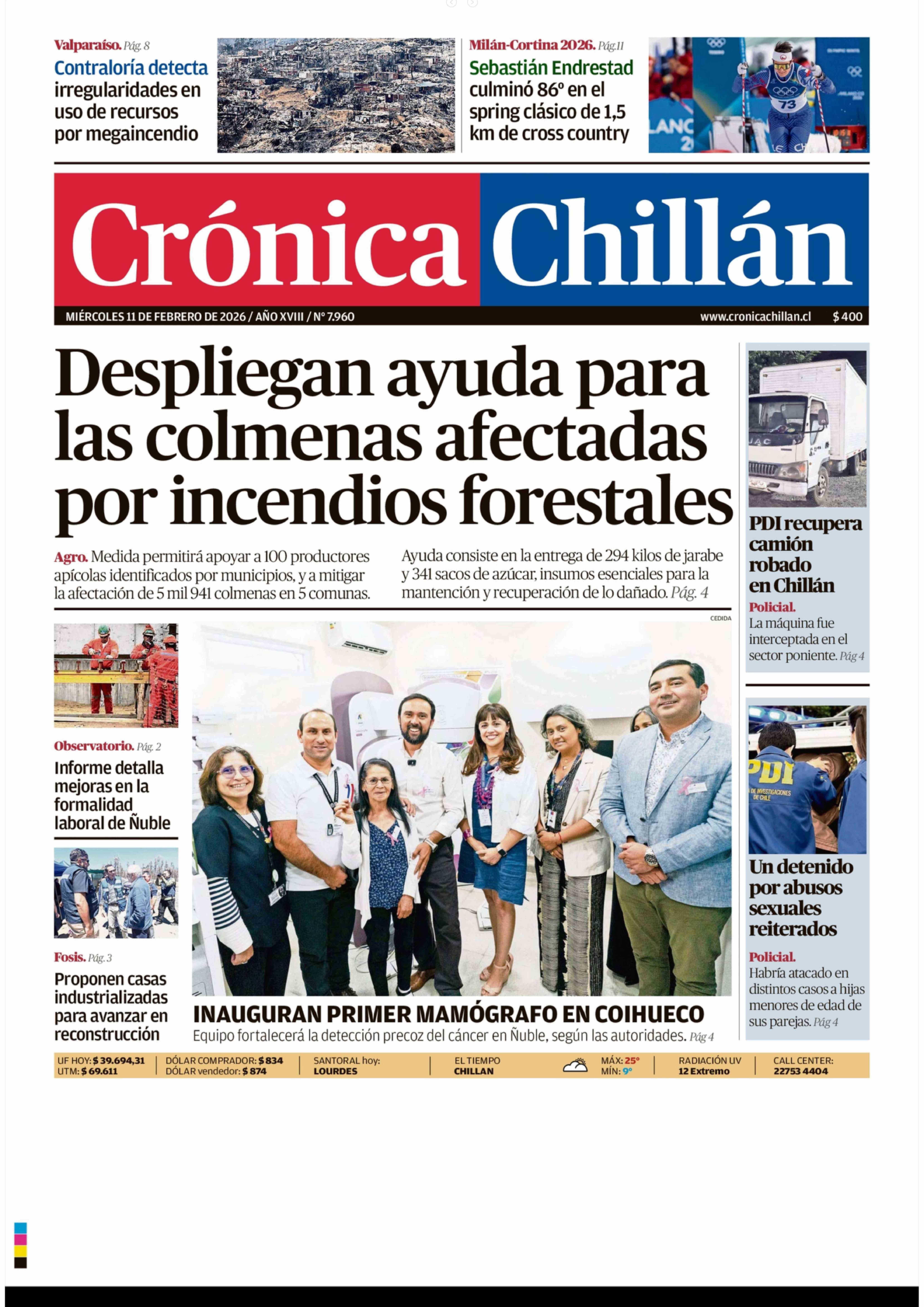 Fecha: 11-02-2026 Sector: Portada Región: Región del Ñuble