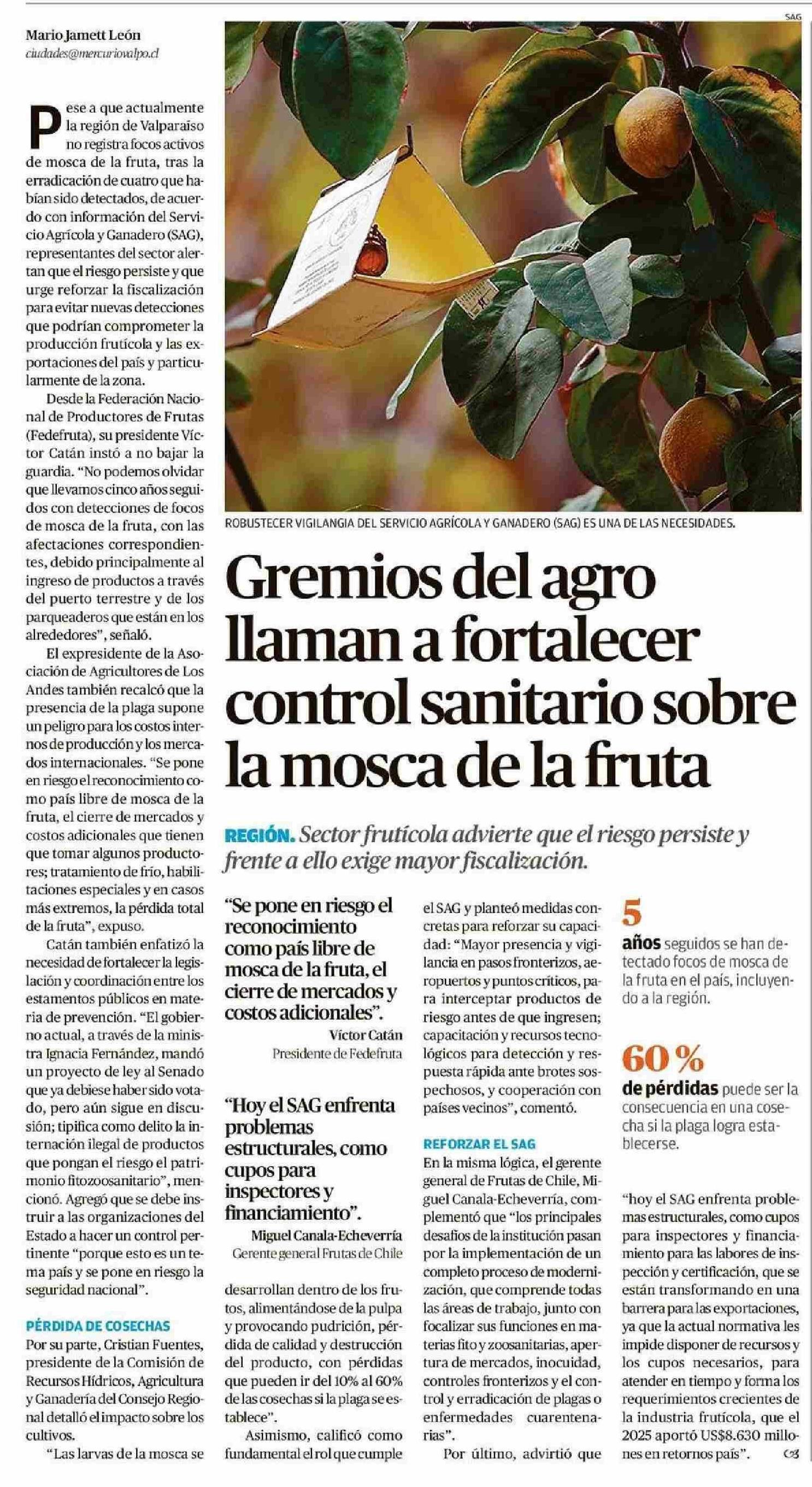 Título: Gremios del agro llaman a fortalecer control sanitario sobre la mosca de la fruta