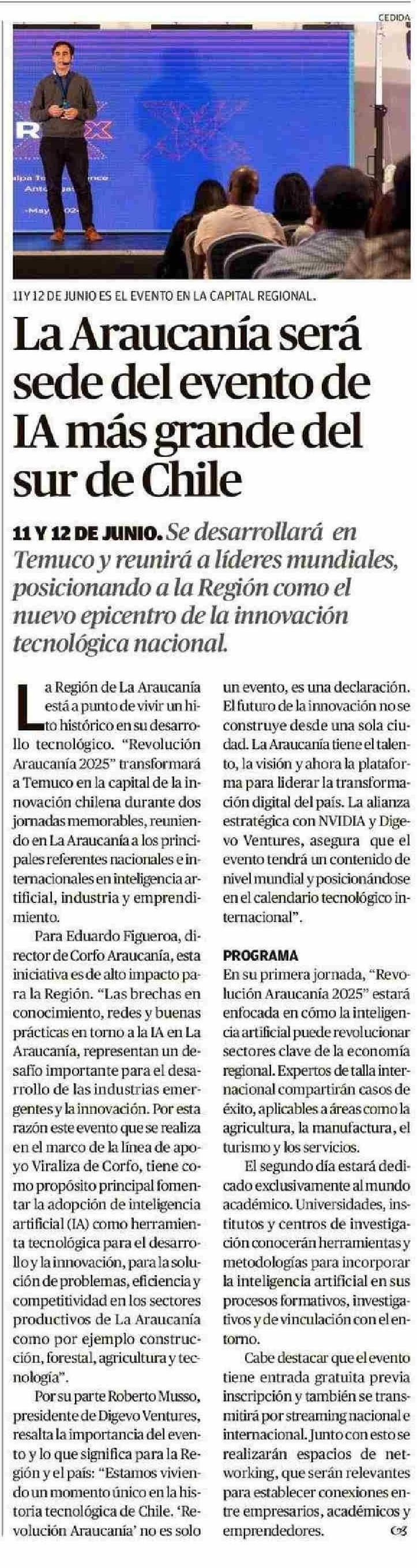 La Araucanía será sede del evento de IA más grande del sur de Chile 10-06-2025 El Austral de la Araucanía |