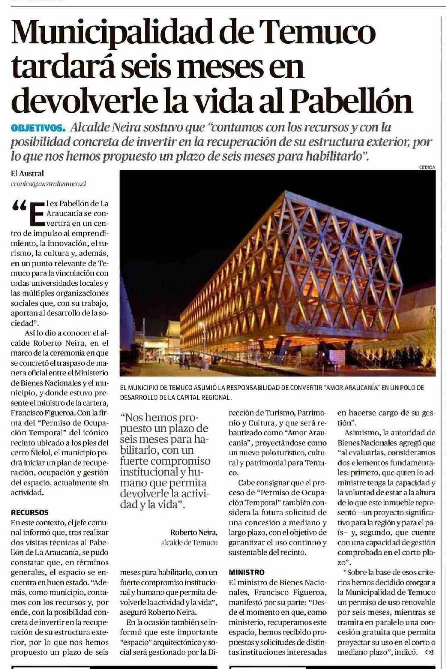 | Título: | Municipalidad de Temuco devolverle la vida al Pabellón tardará seis meses en |