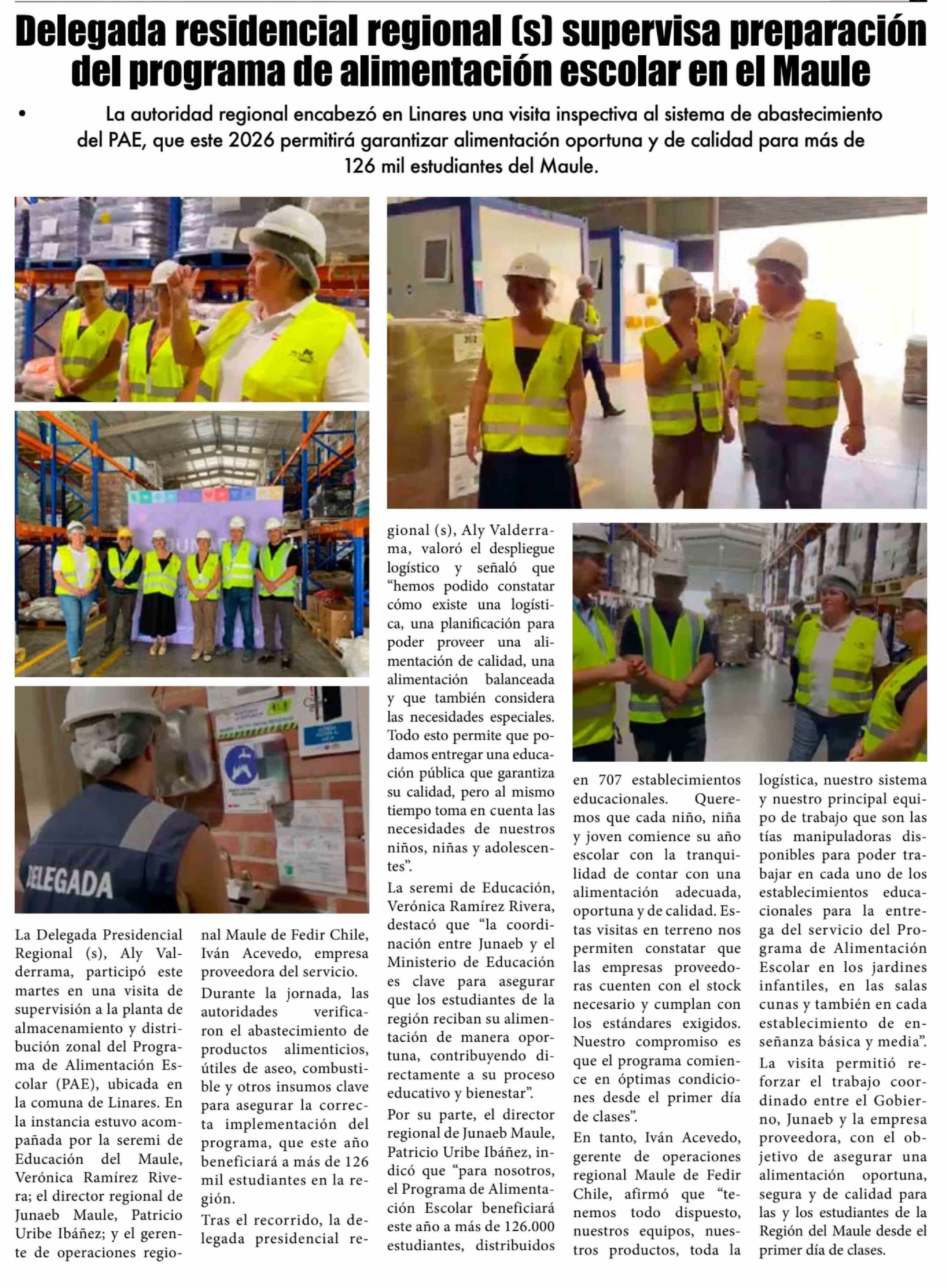 Delegada residencial regional (s) supervisa preparación del programa de alimentación escolar en el Maule 25-02-2026 El Lector |
