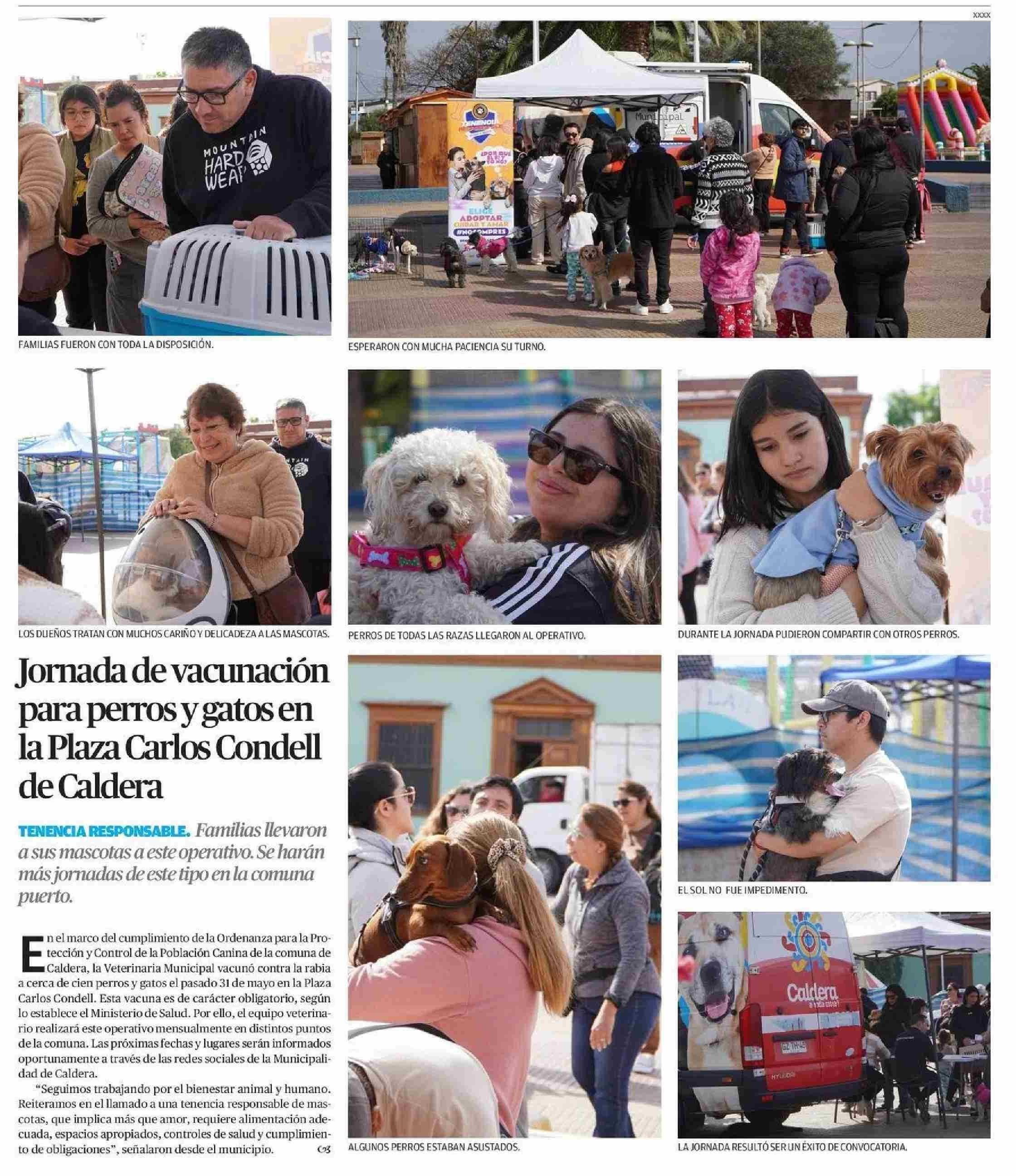 Jornada de vacunación para perros y gatos en la Plaza Carlos Condell de Caldera 02-06-2025 El Diario de Atacama |