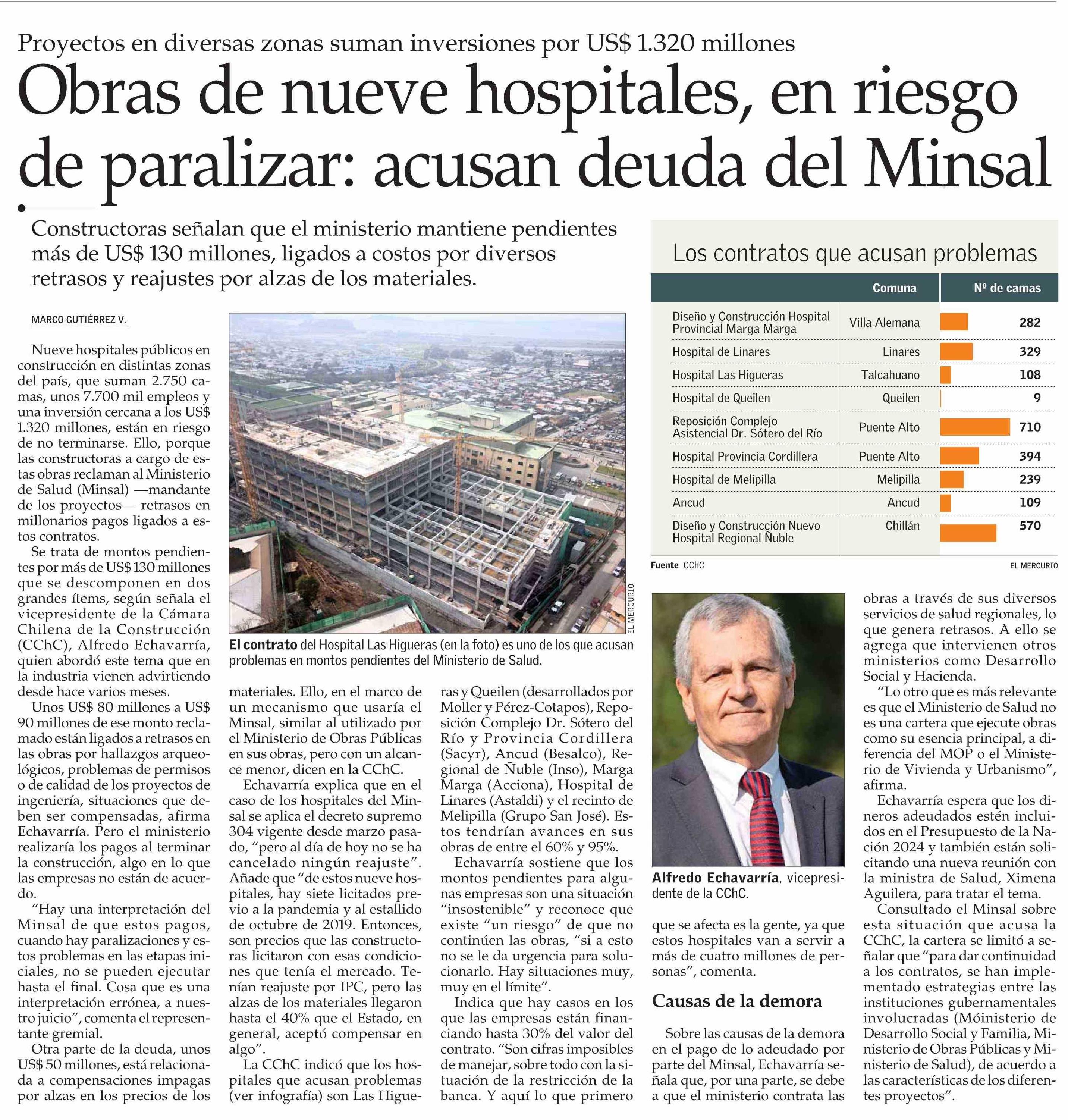 Título: Obras de nueve hospitales, en riesgo de paralizar: acusan deuda del Minsal