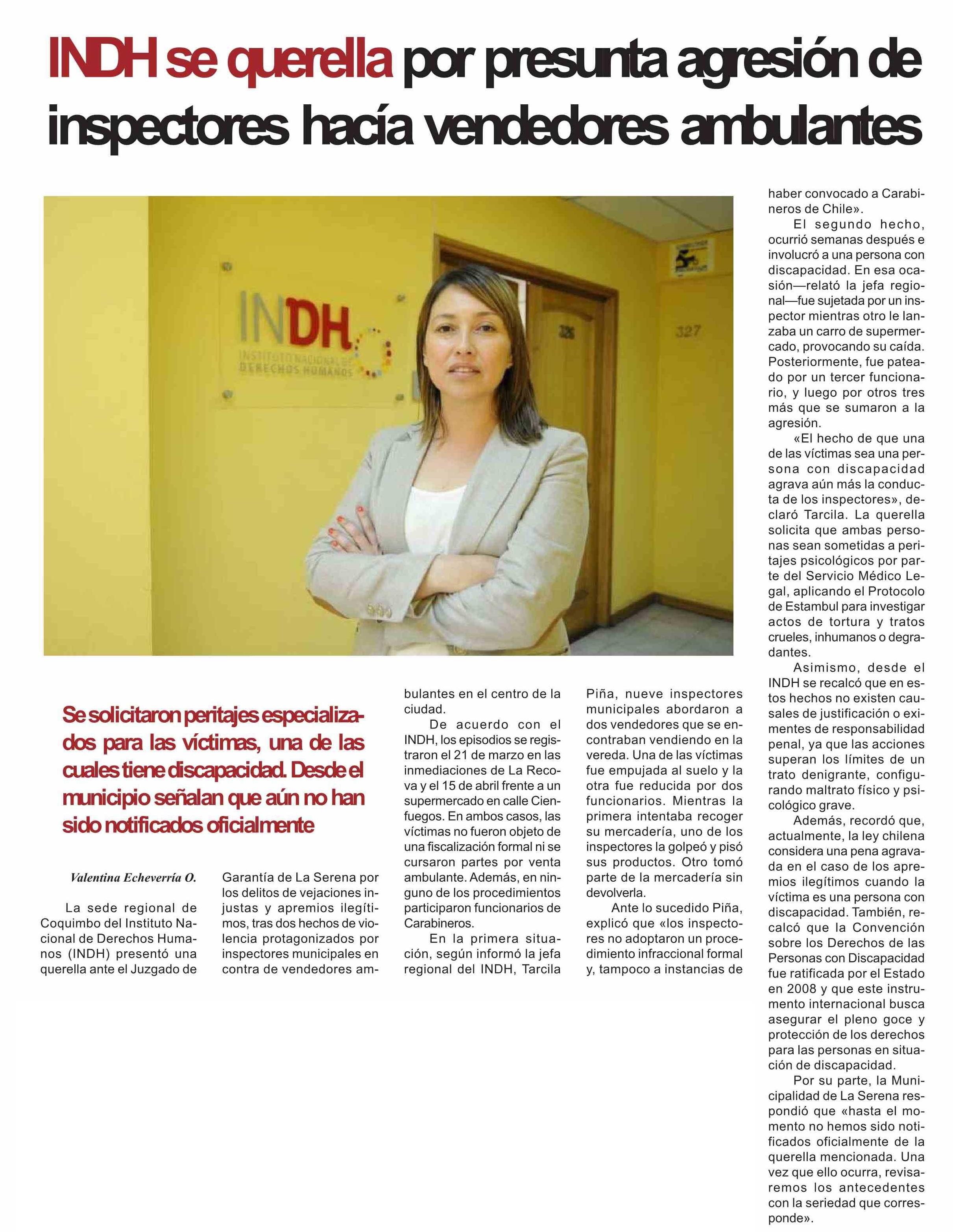 | Título: | INDH se querella por presunta agresión de inspectores hacía vendedores ambulantes |