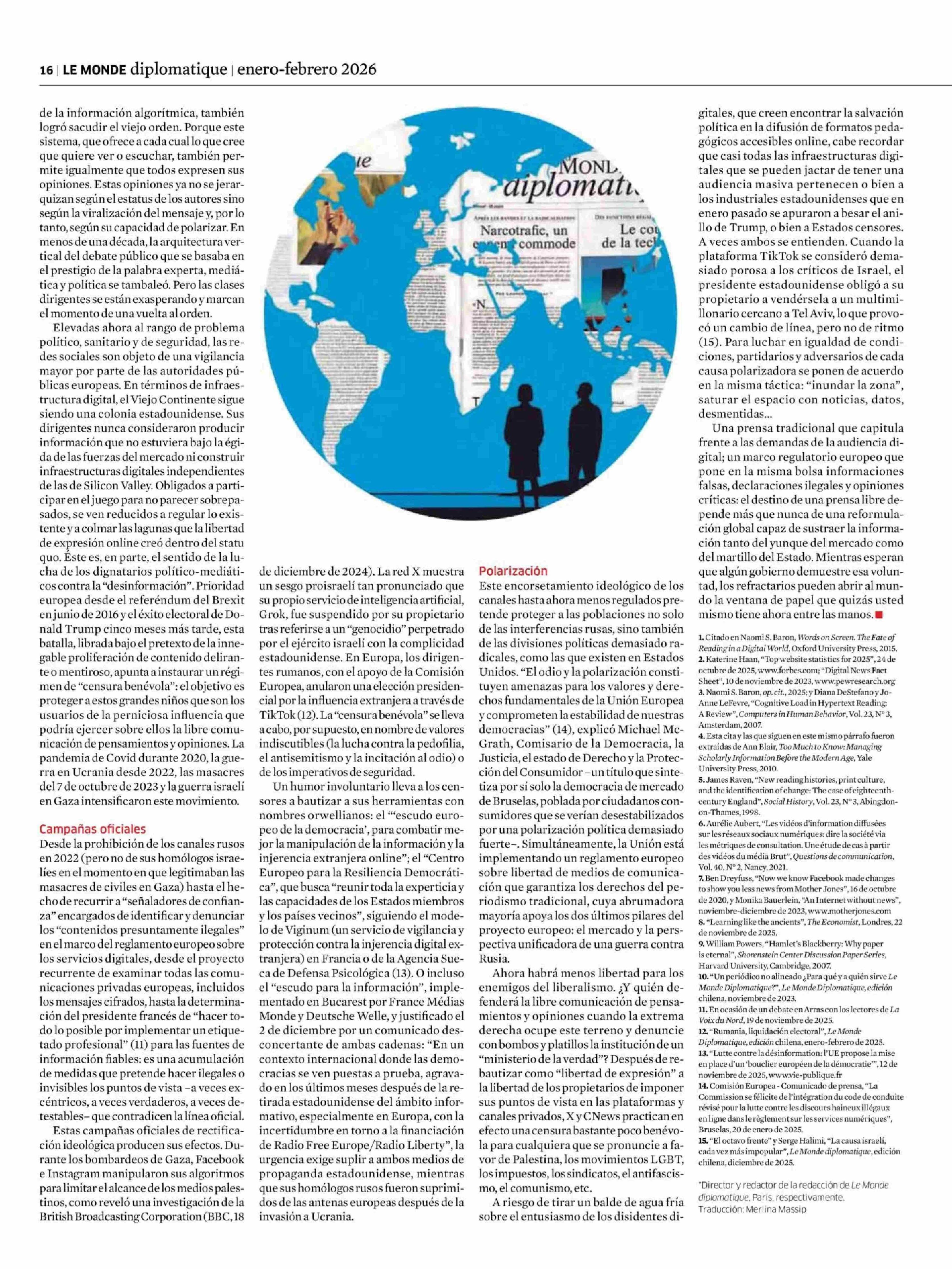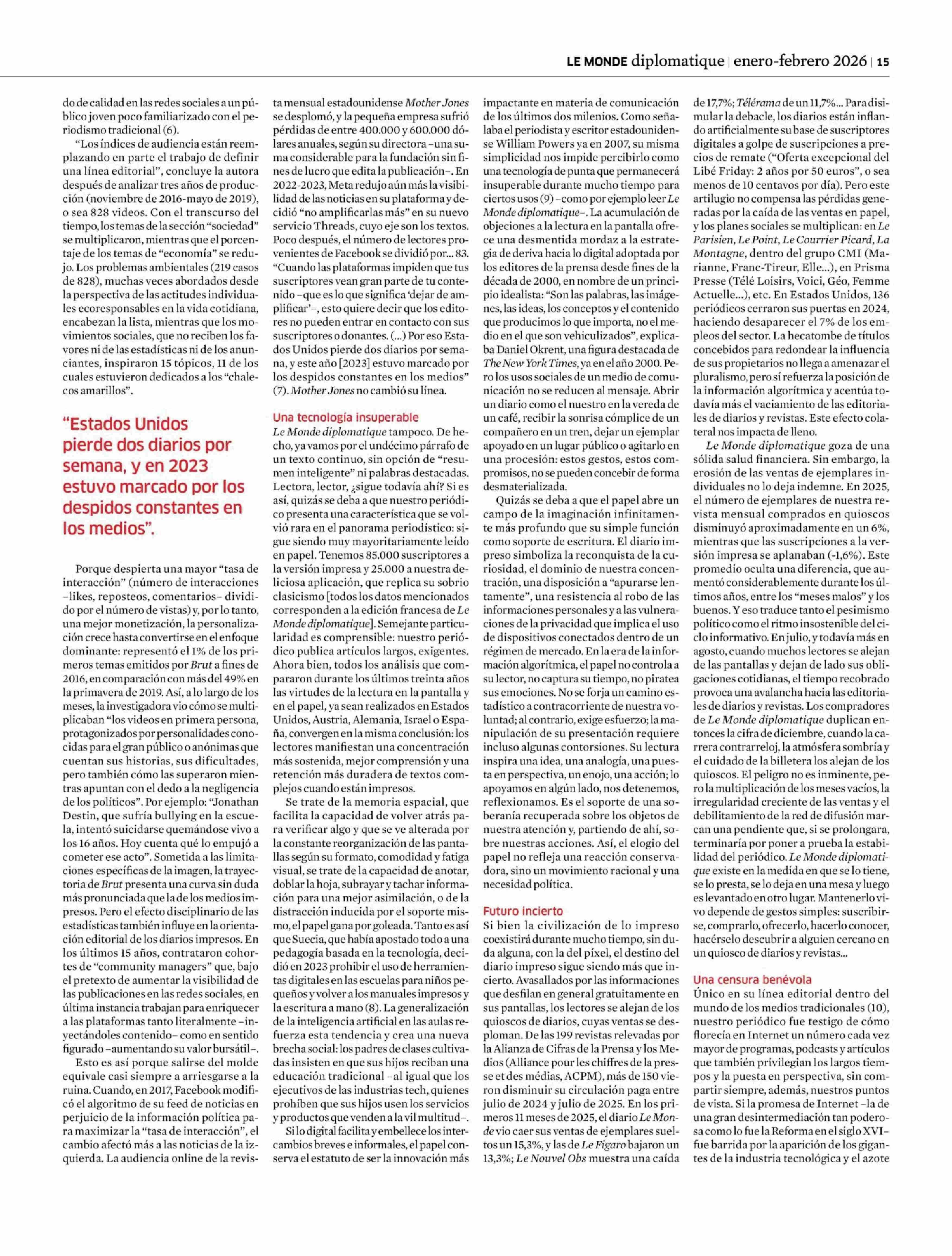 COLUMNAS DE OPINIÓN: Elogio del papel 12-01-2026 Le Monde Diplomatique |
