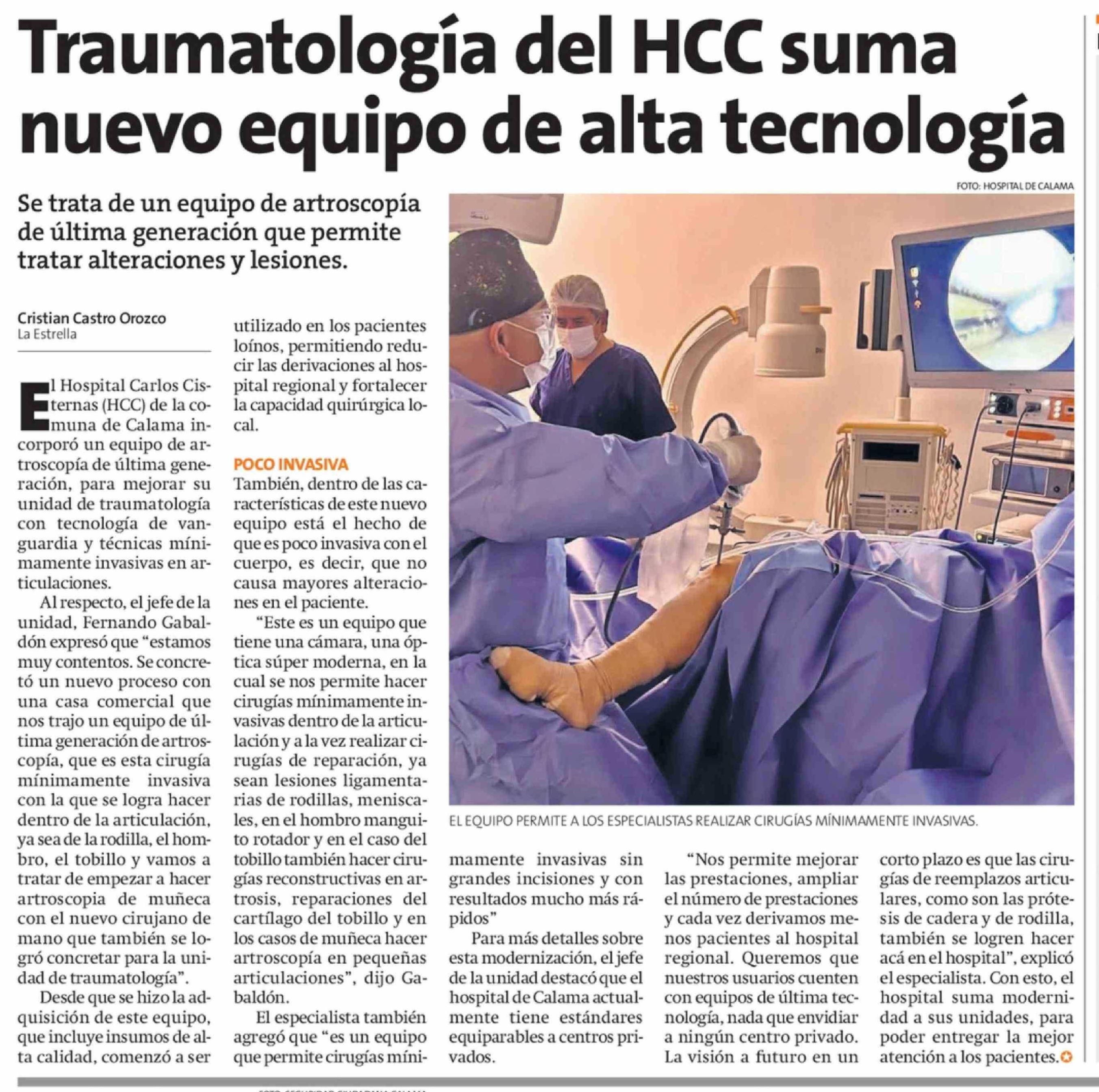 Traumatología del HCC suma nuevo equipo de alta tecnología 11-04-2026 La Estrella de Antofagasta |