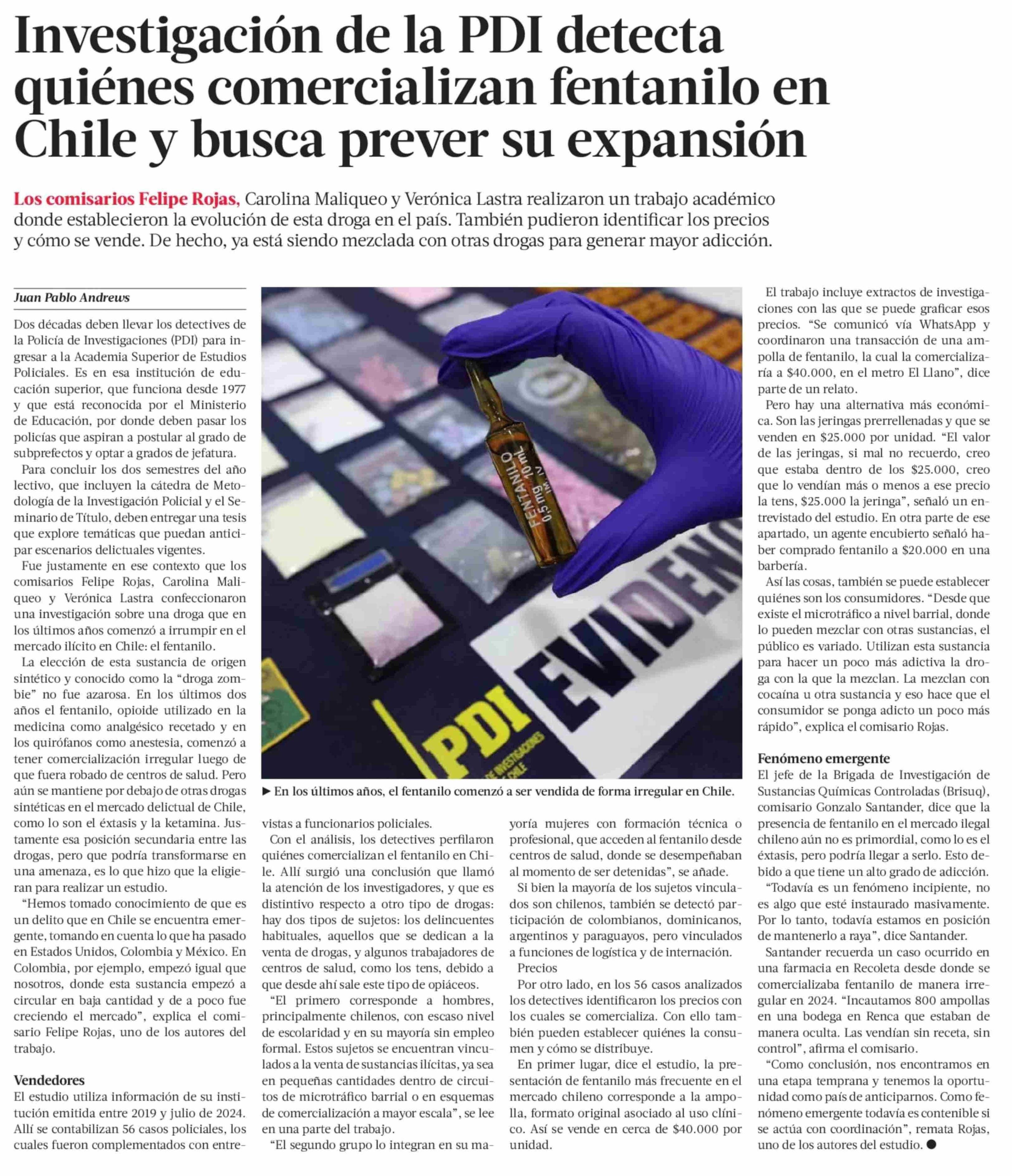 Investigación de la PDI detecta quiénes comercializan fentanilo en Chile y busca prever su expansión 09-01-2026 La Tercera |